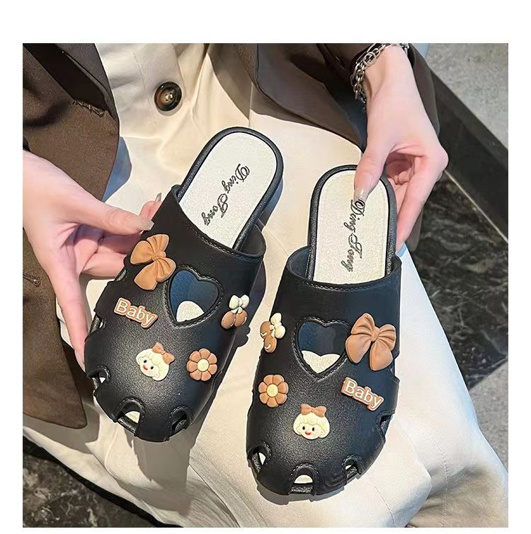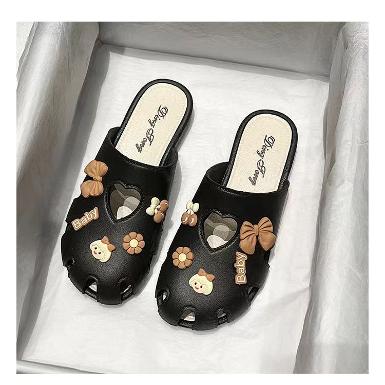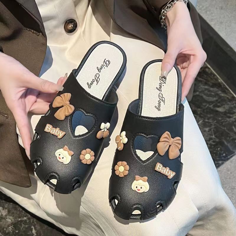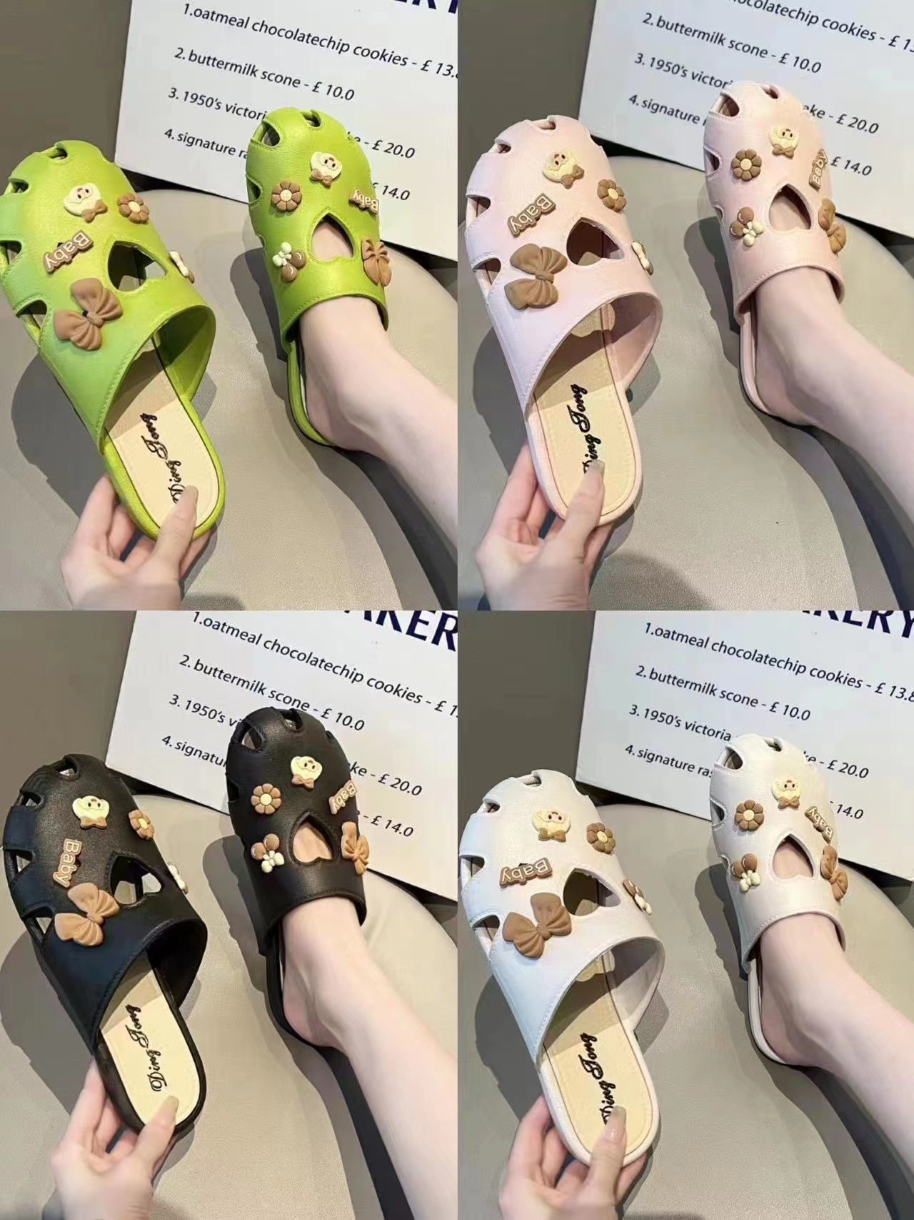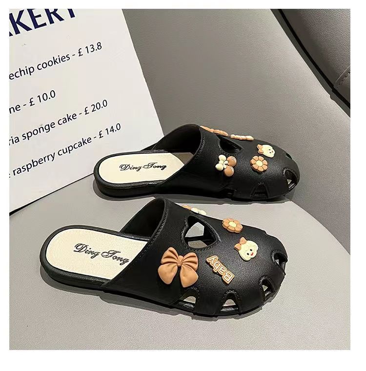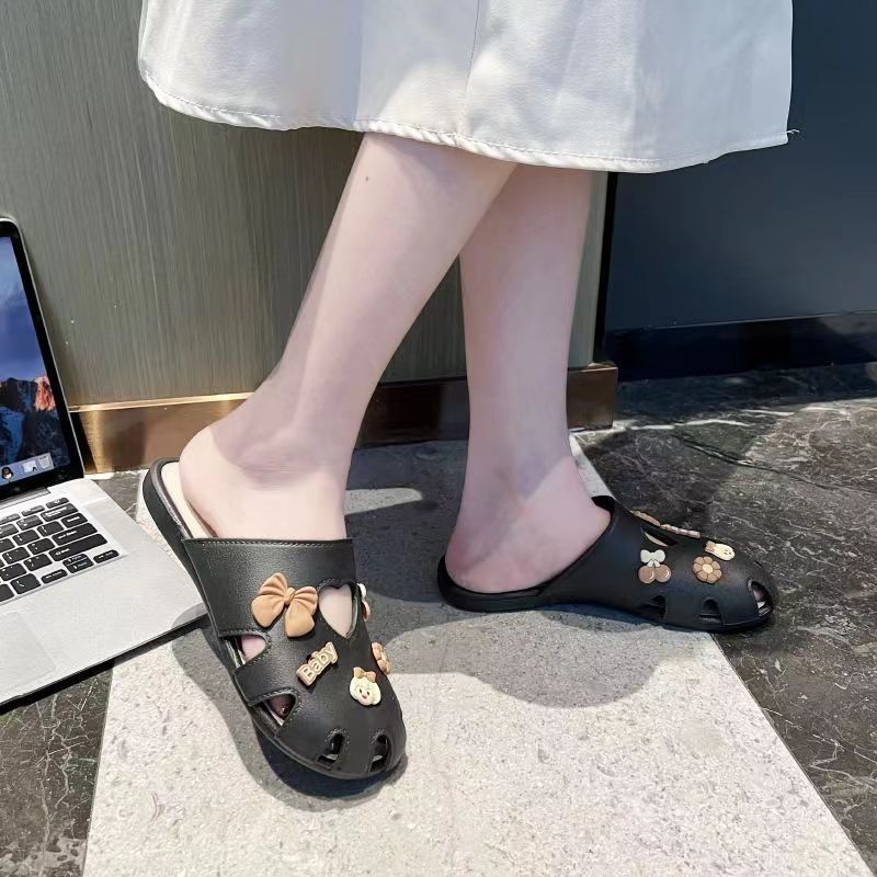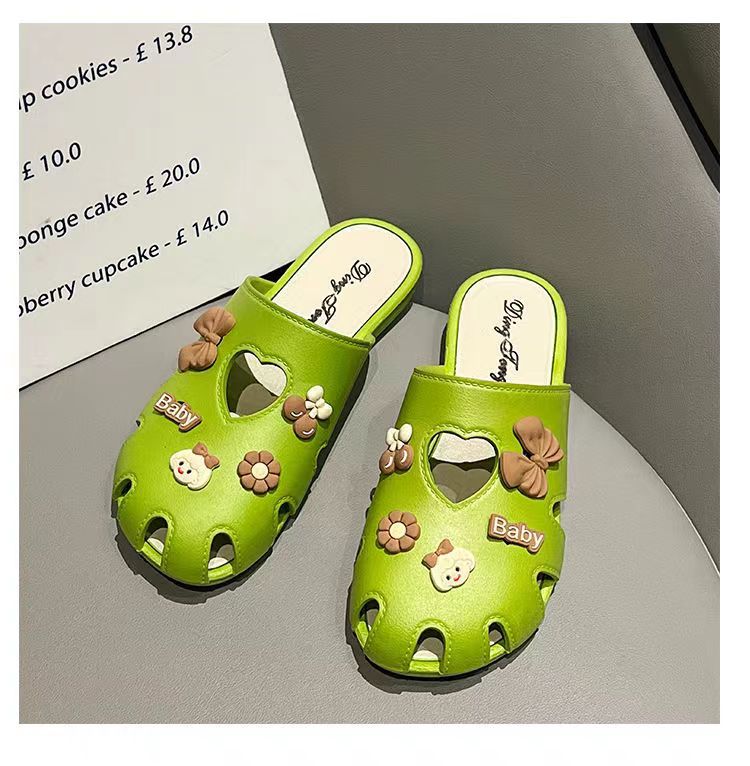 2023 Mới Gấu Bánh Quy Có Lỗ Giày Nữ Mùa Hè Dễ Thương Áo Khoác Ngoài Thoải Mái Đáy Dày Bao Đầu Đi Biển Cho Và Dép Nữ