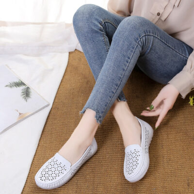 2023 Mới Giày Y Tá Nữ Mùa Hè Đế Mềm Chống Trơn Trượt Phẳng Phụ Nữ Mang Thai Giày Đơn Thoáng Khí Trơn giày Mẹ
