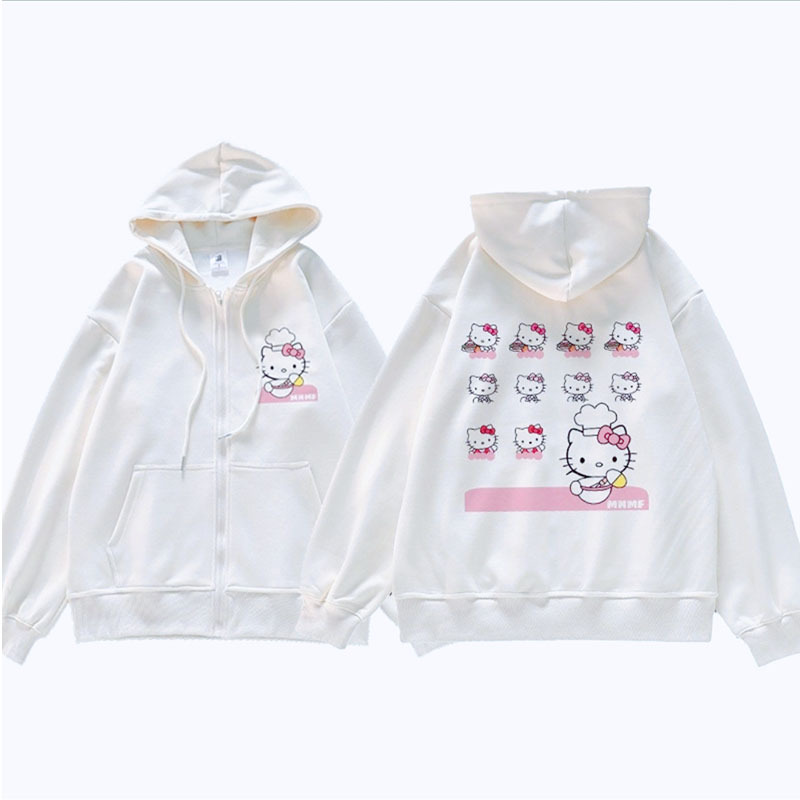 2023 mới HelloKitty anime hoạt hình mèo con in hình dễ thương phiên bản Hàn Quốc áo khoác rời áo khoác nữ sinh viên