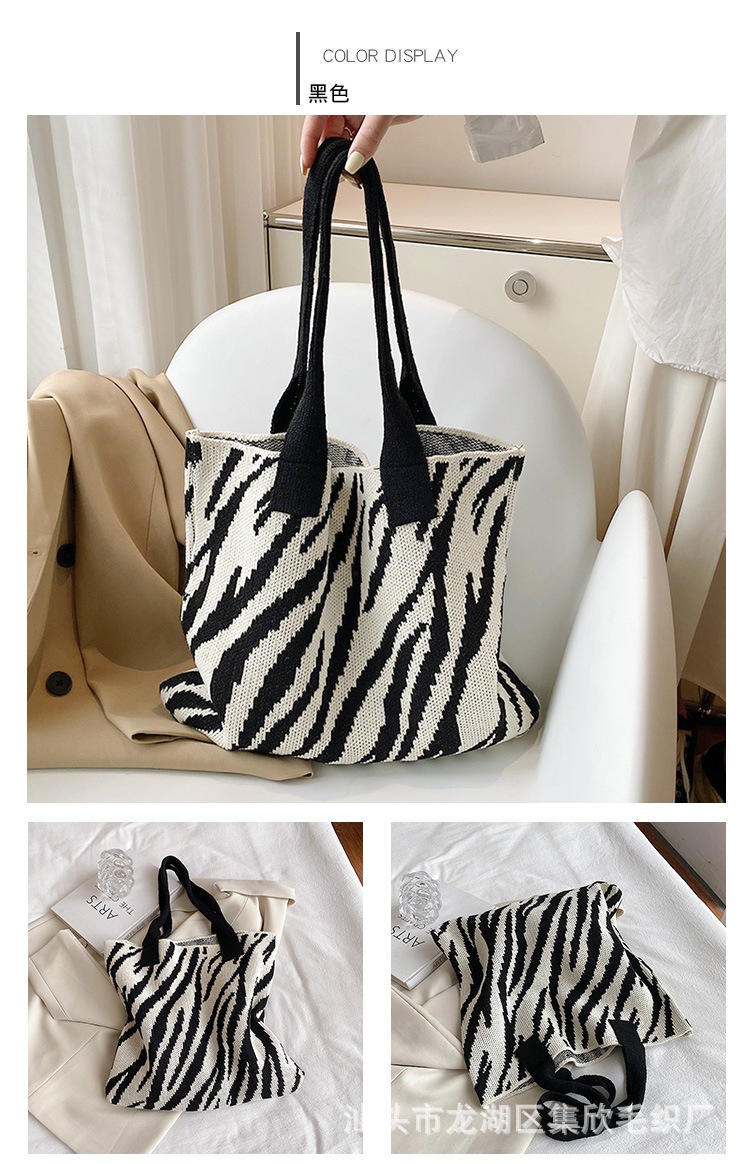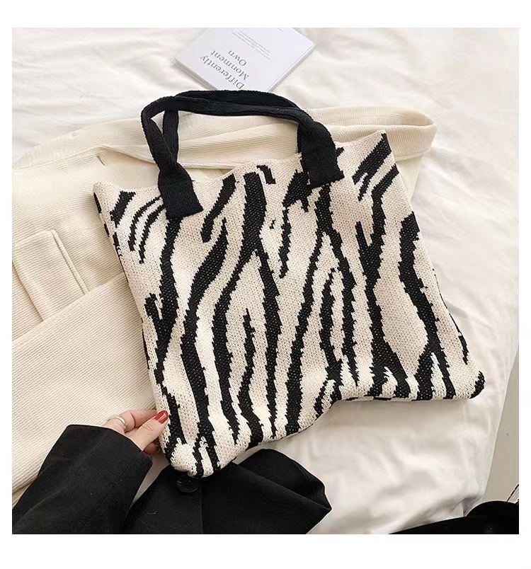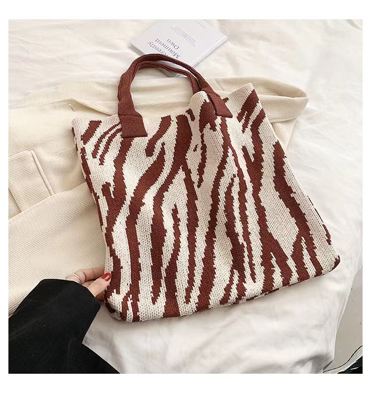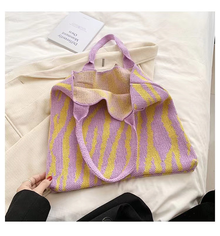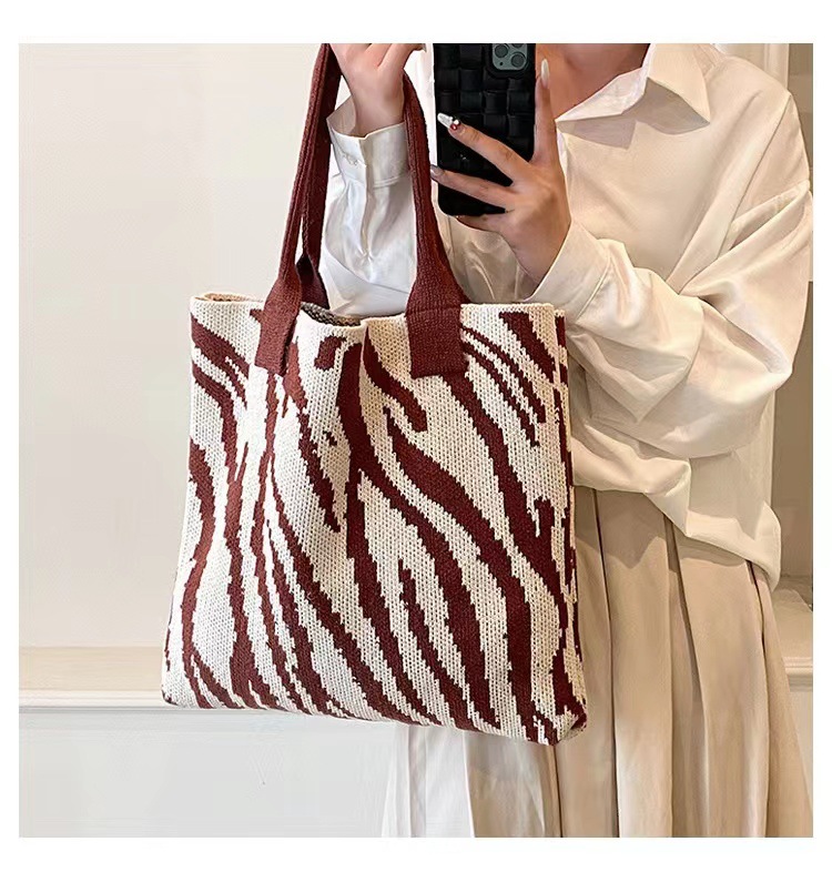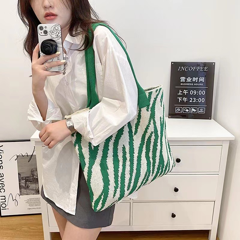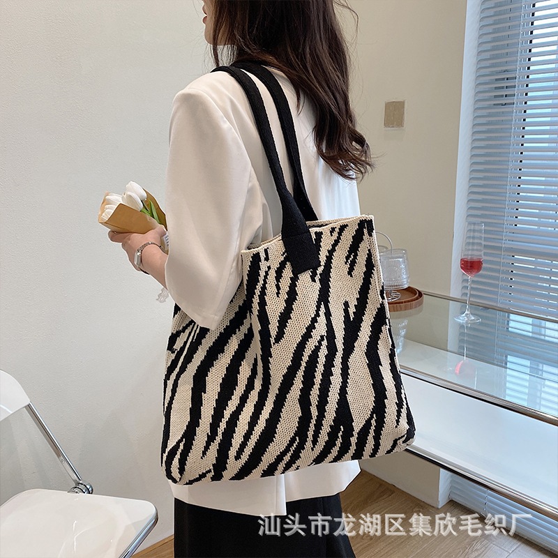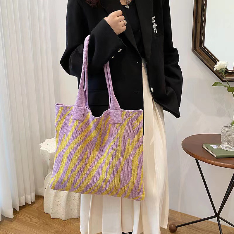 2023 mới ins túi dệt kim túi đeo vai thời trang túi sọc dung tích lớn túi tote túi xách phong cách retro