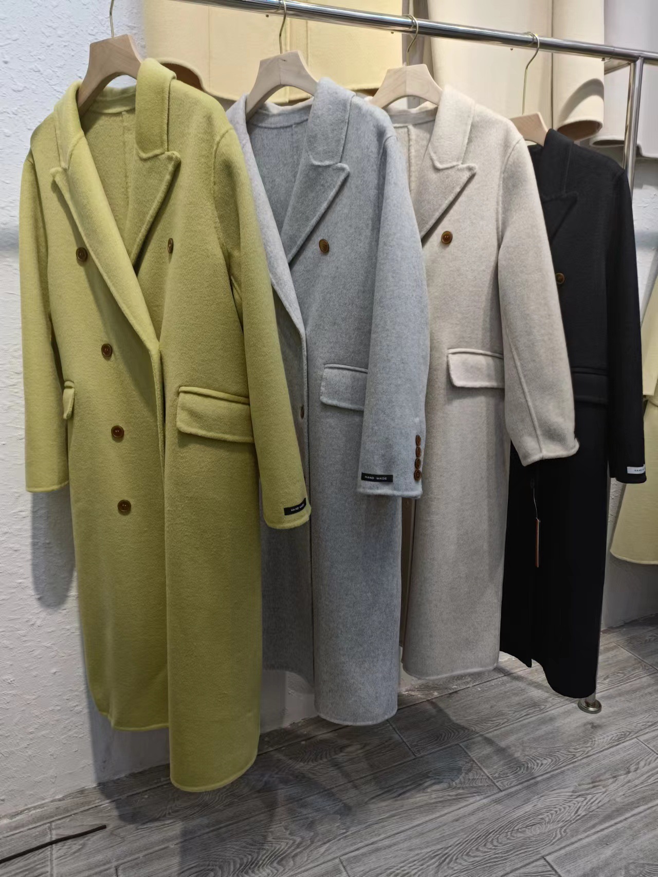 2023 Mới Len Hai Mặt Cổ Ve Áo Đôi Phong Cách Hàn Quốc Cổ Cao Áo Khoác Len Nữ Áo Khoác