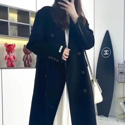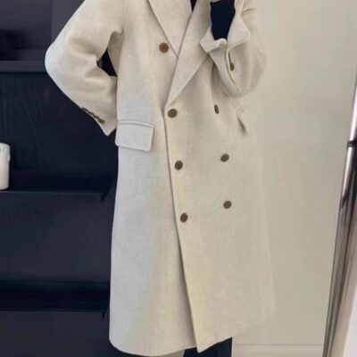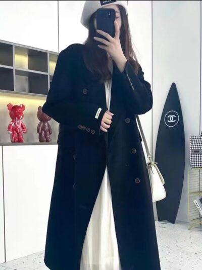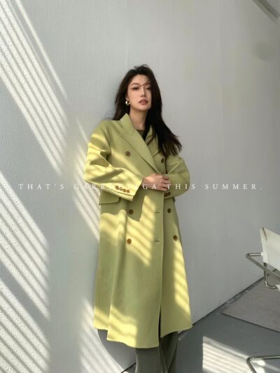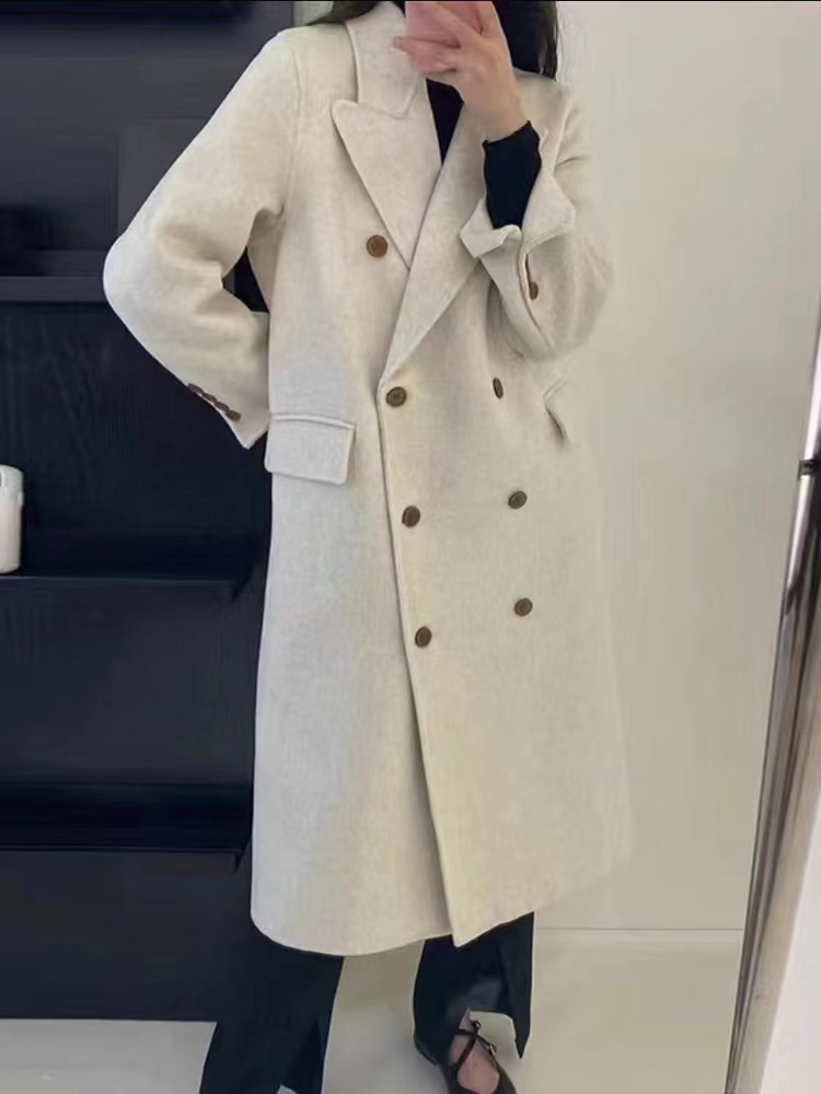 2023 Mới Len Hai Mặt Cổ Ve Áo Đôi Phong Cách Hàn Quốc Cổ Cao Áo Khoác Len Nữ Áo Khoác