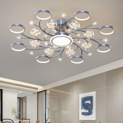 2023 Mới Màu Xanh Xám Bắc Âu Đèn Chùm Phòng Khách Đèn Bầu Không Khí Phòng Khách Ánh Sáng Cao Cấp Ốp Trần Đèn Chùm Cả Nhà Trọn Gói