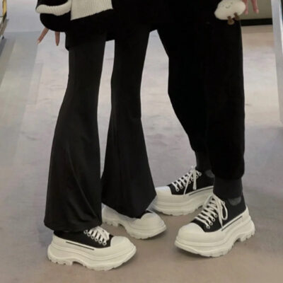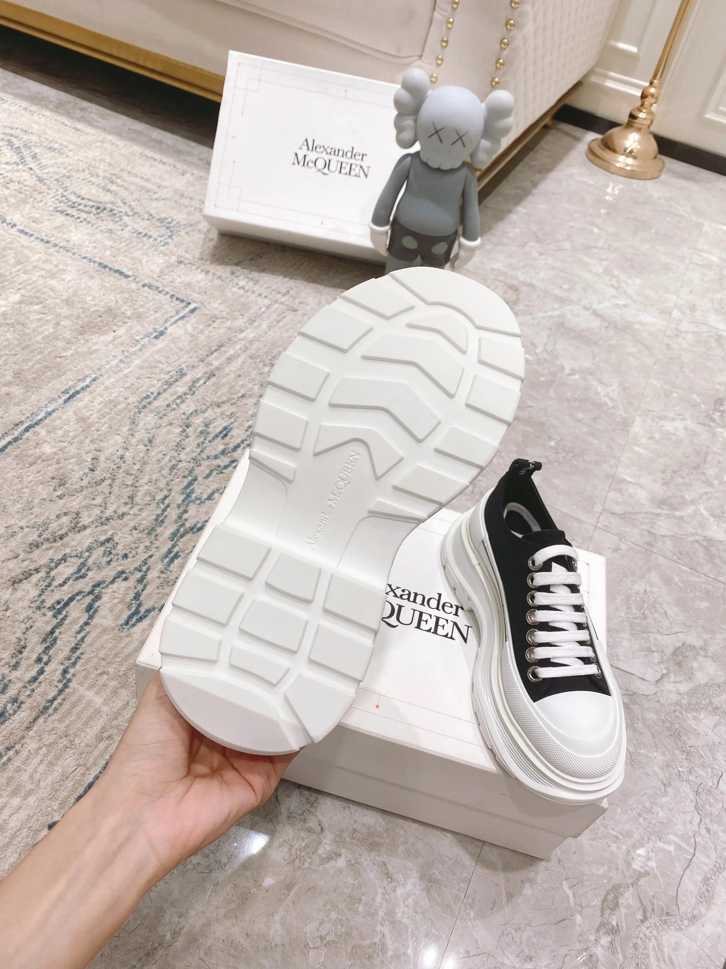 2023 Mới McQueen Đế Dày Giày Vải Thể Thao Nữ Giày Nhỏ Màu Trắng Bố Giày Muffin Tăng Chiều Cao Giày Đôi Nam