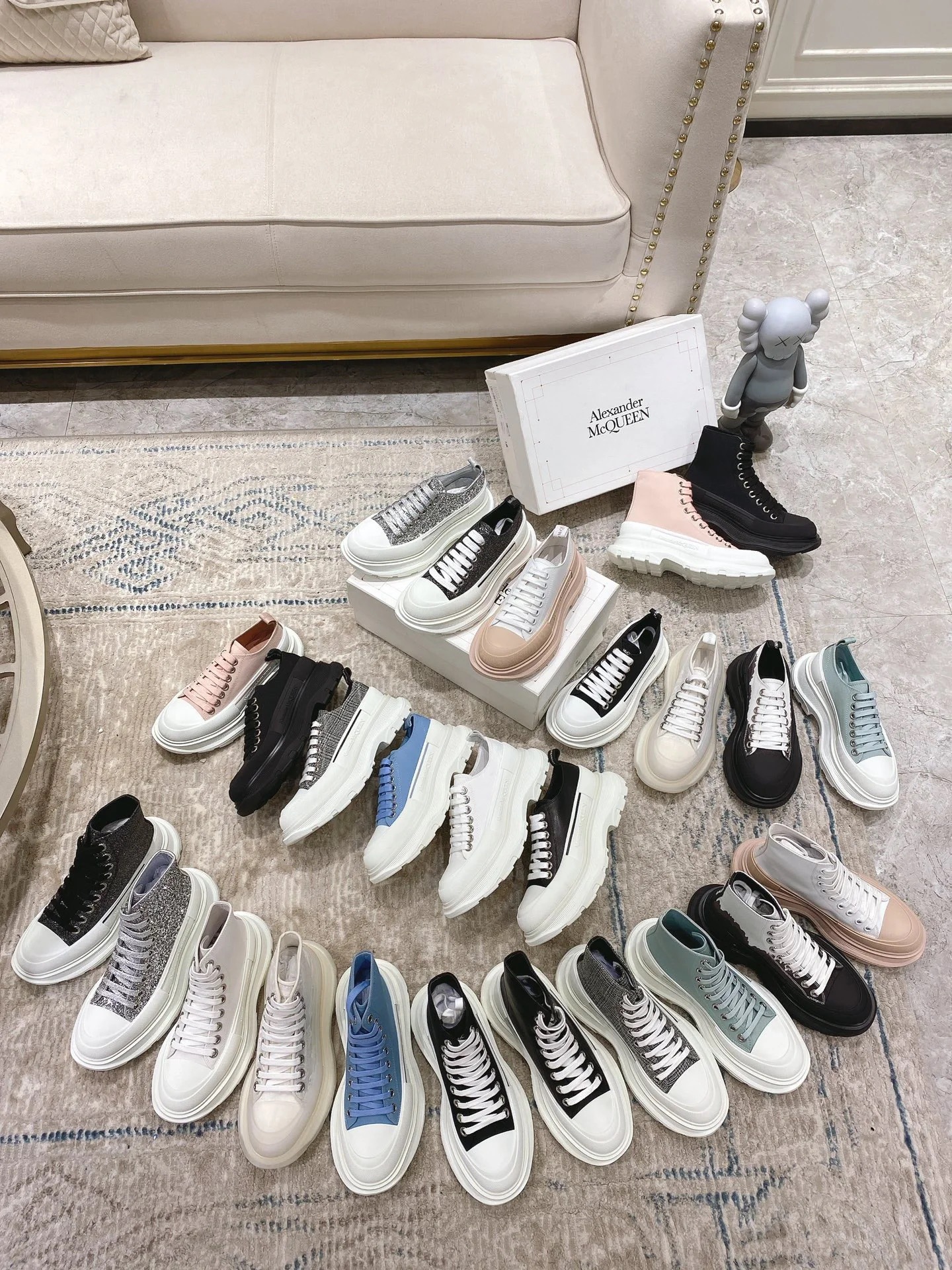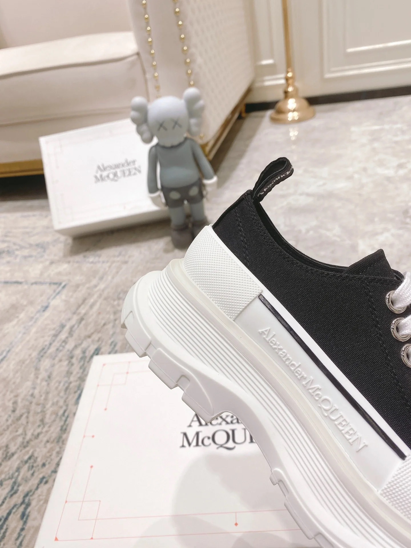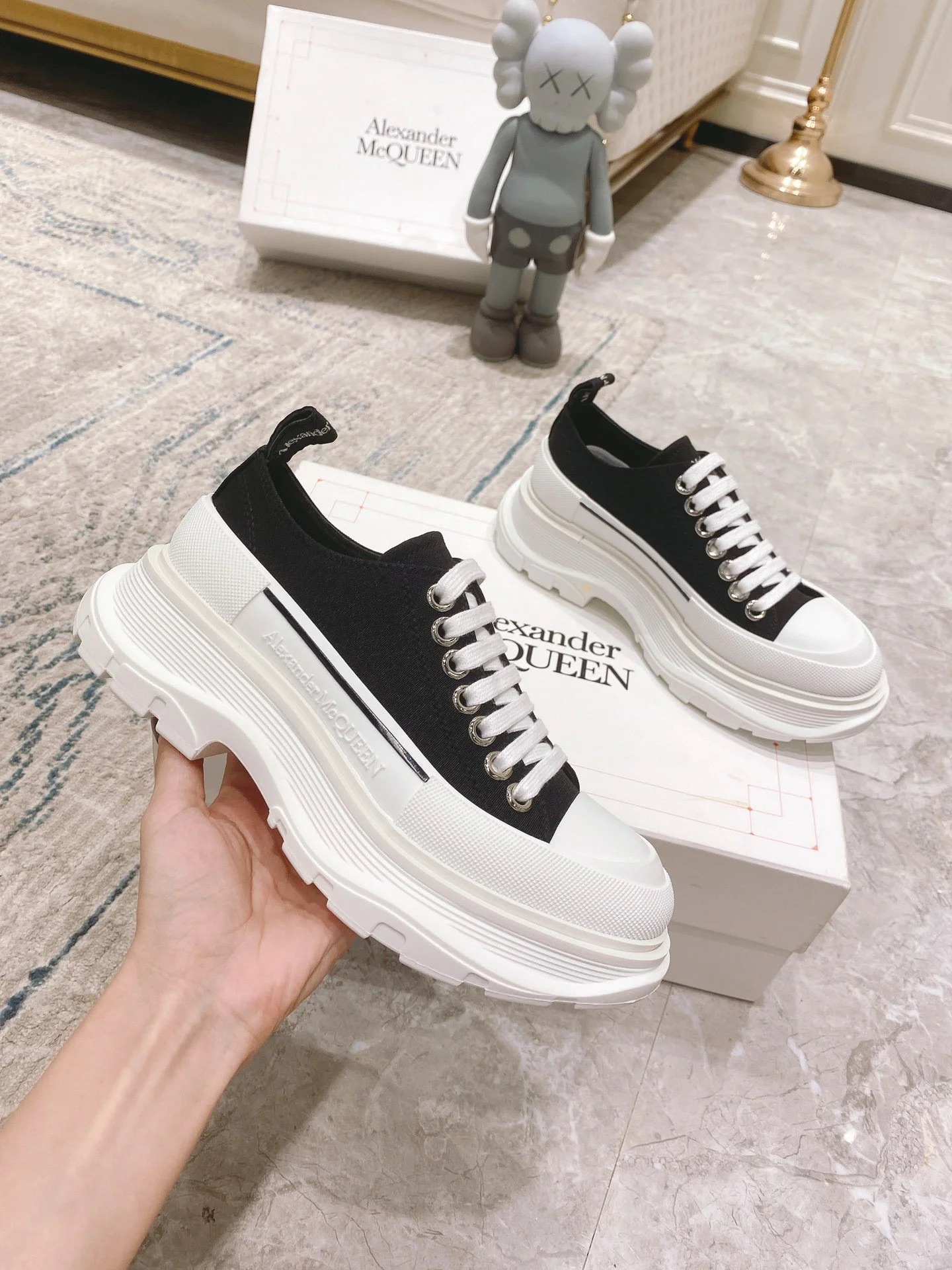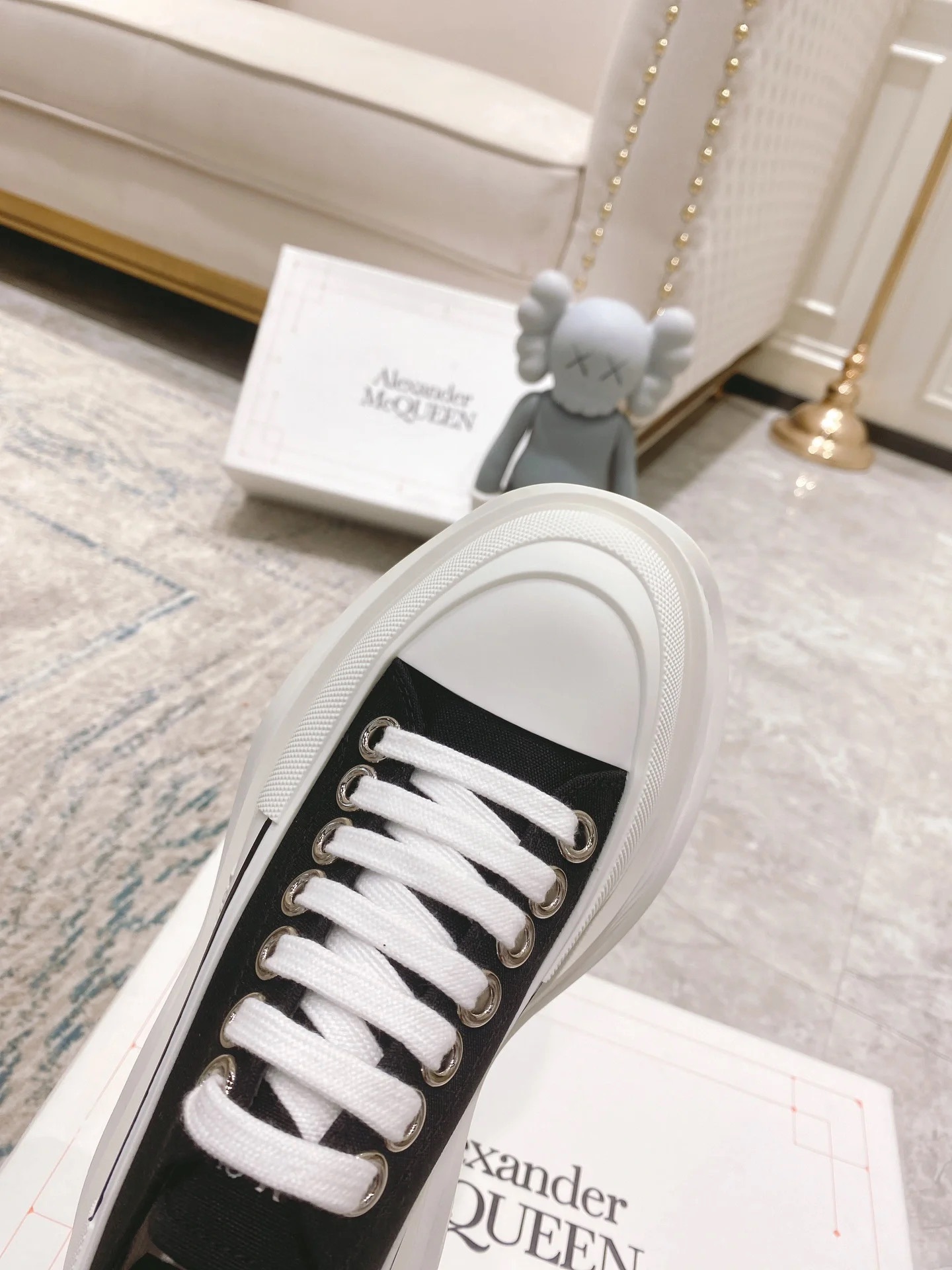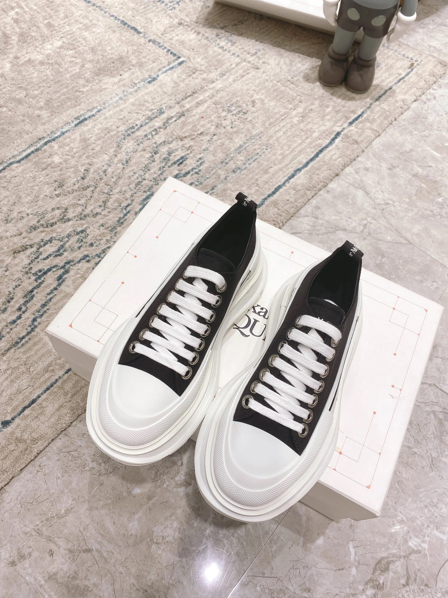2023 Mới McQueen Đế Dày Giày Vải Thể Thao Nữ Giày Nhỏ Màu Trắng Bố Giày Muffin Tăng Chiều Cao Giày Đôi Nam