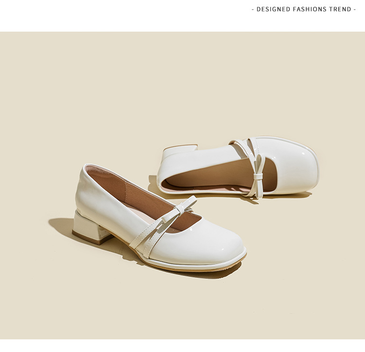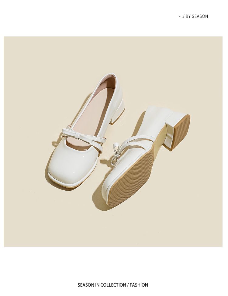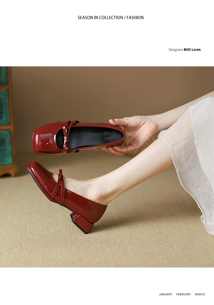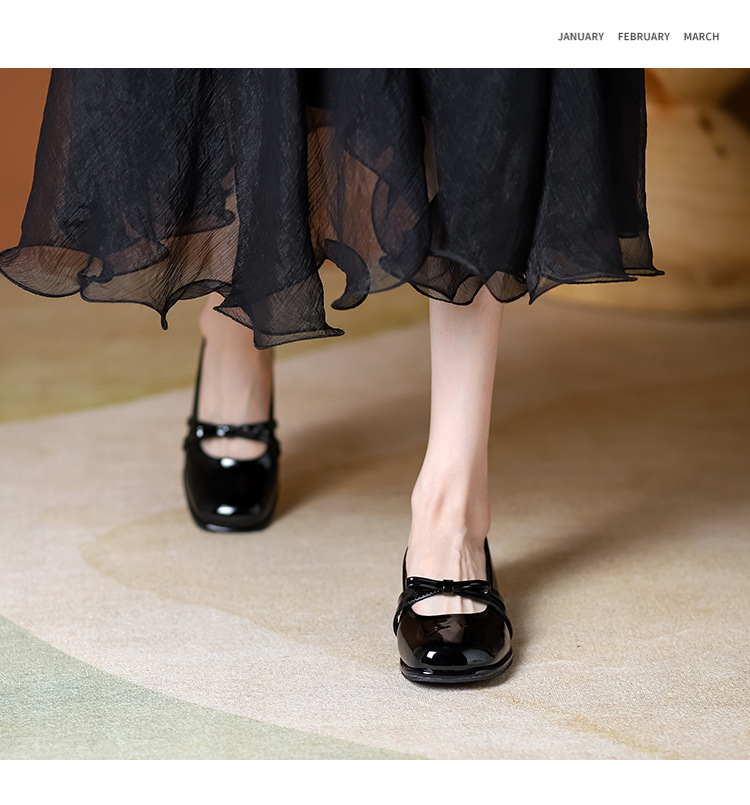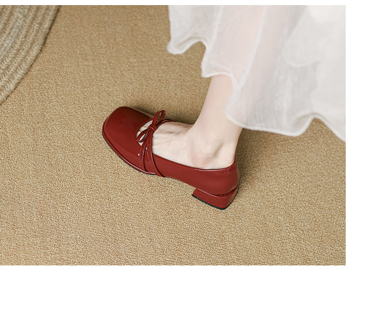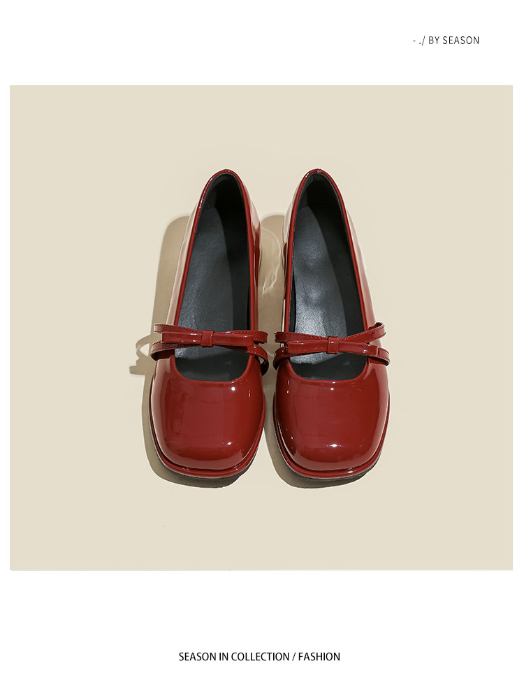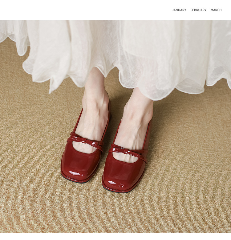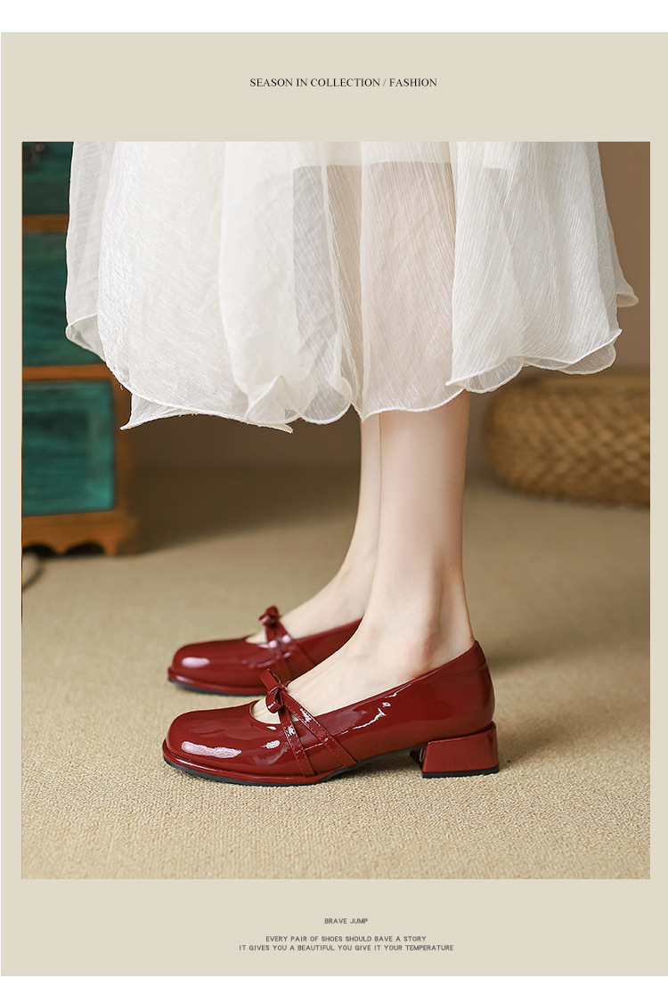 2023 mới mùa xuân và mùa hè Pháp mũi vuông miệng nông giày Mary Jane giày da nhỏ nơ đỏ dày vừa gót giày đơn nữ