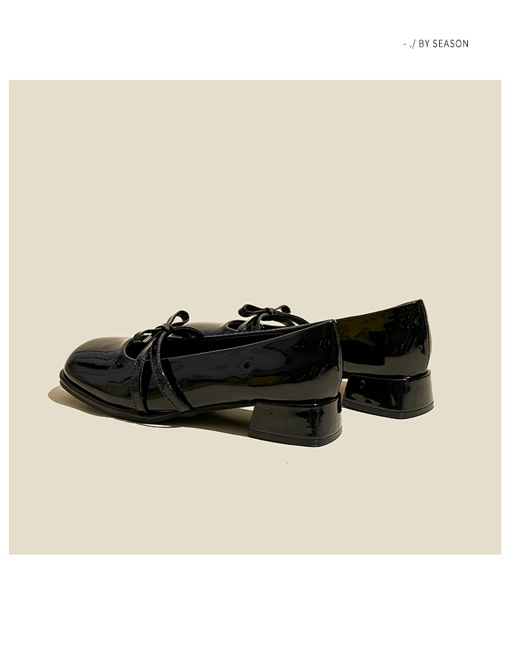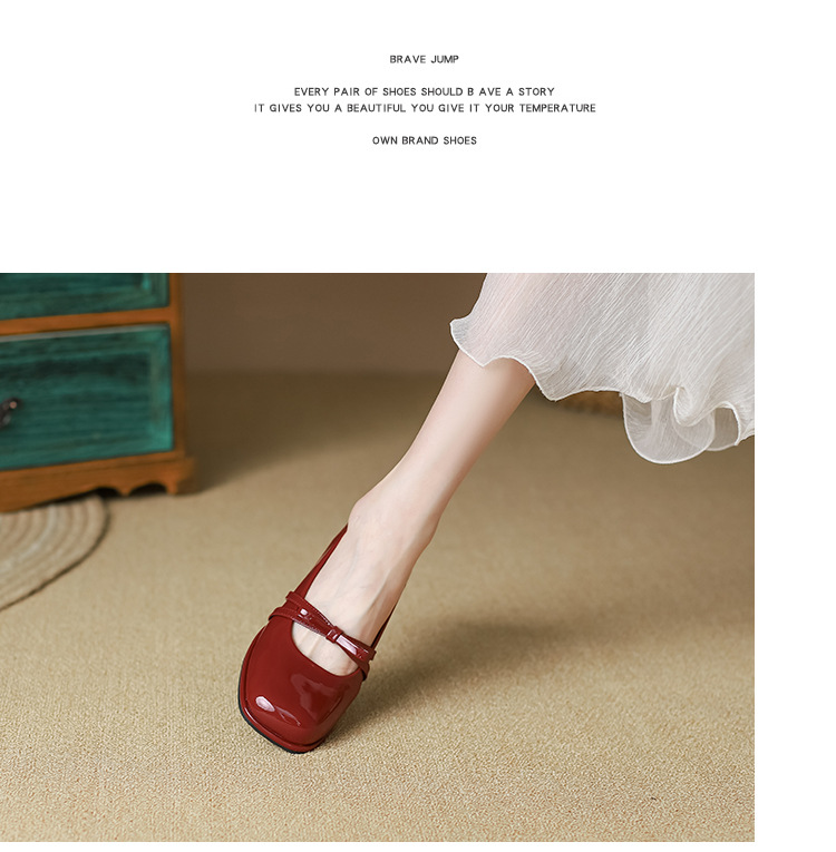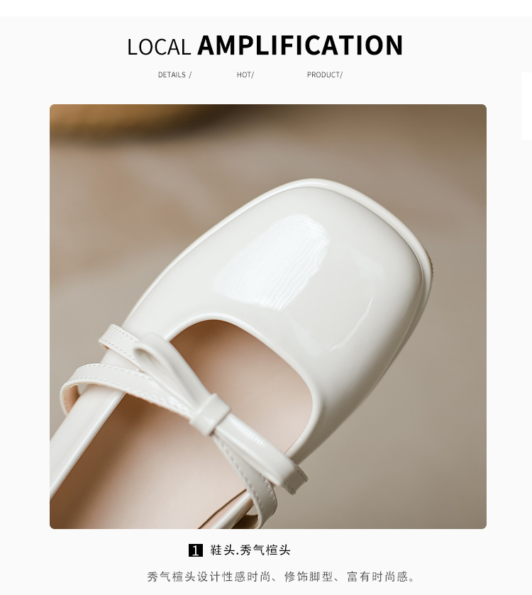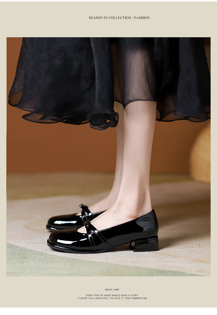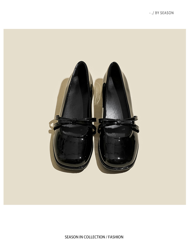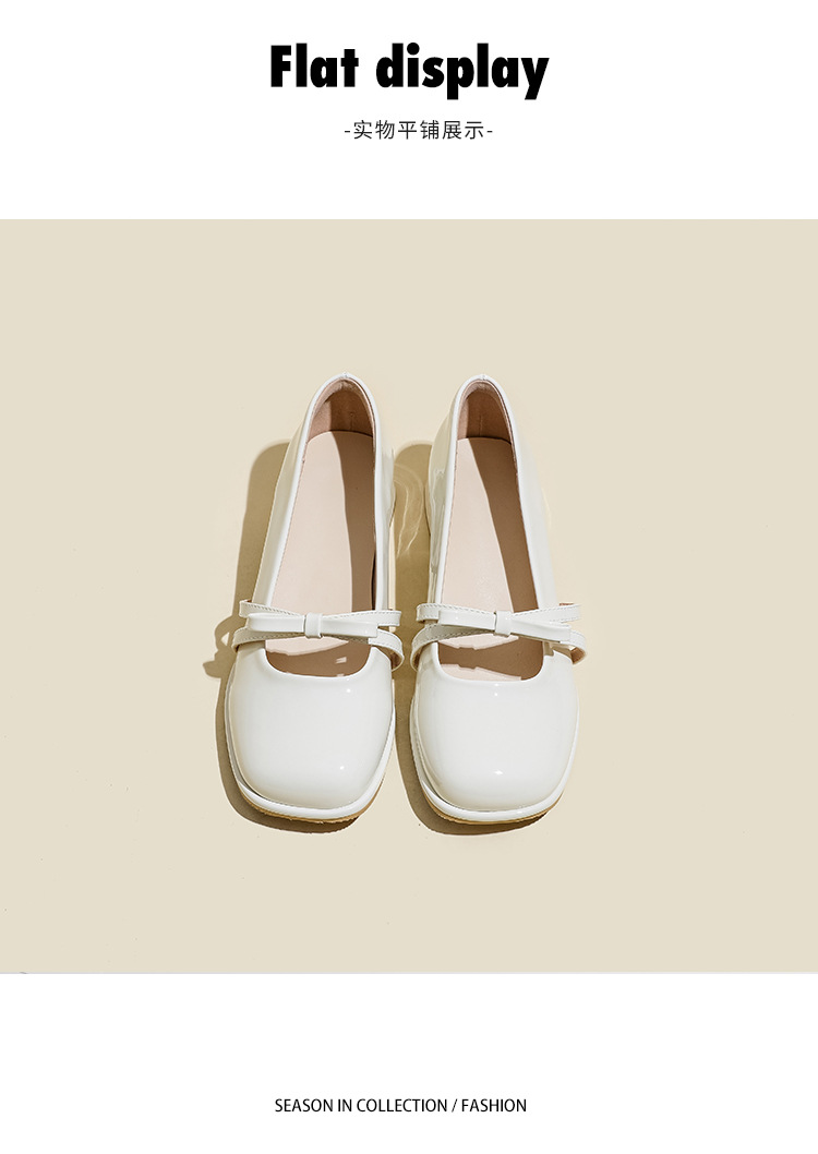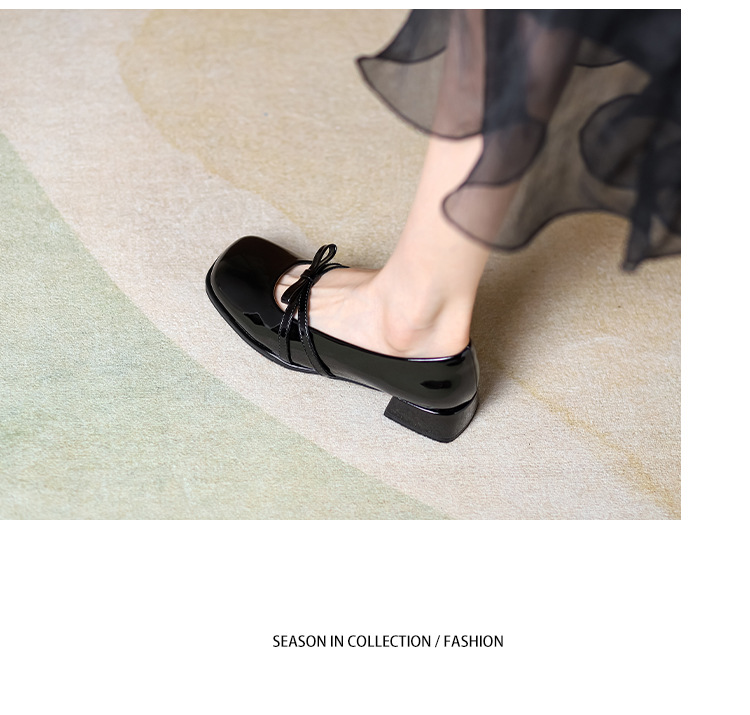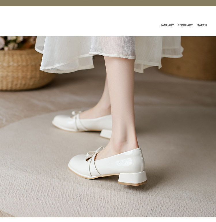 2023 mới mùa xuân và mùa hè Pháp mũi vuông miệng nông giày Mary Jane giày da nhỏ nơ đỏ dày vừa gót giày đơn nữ