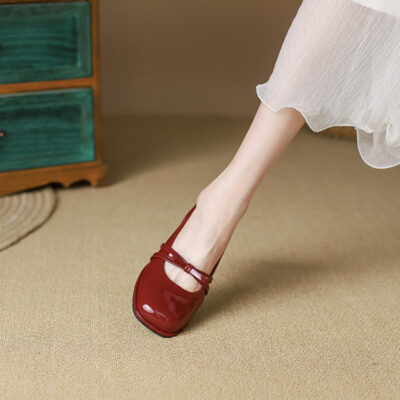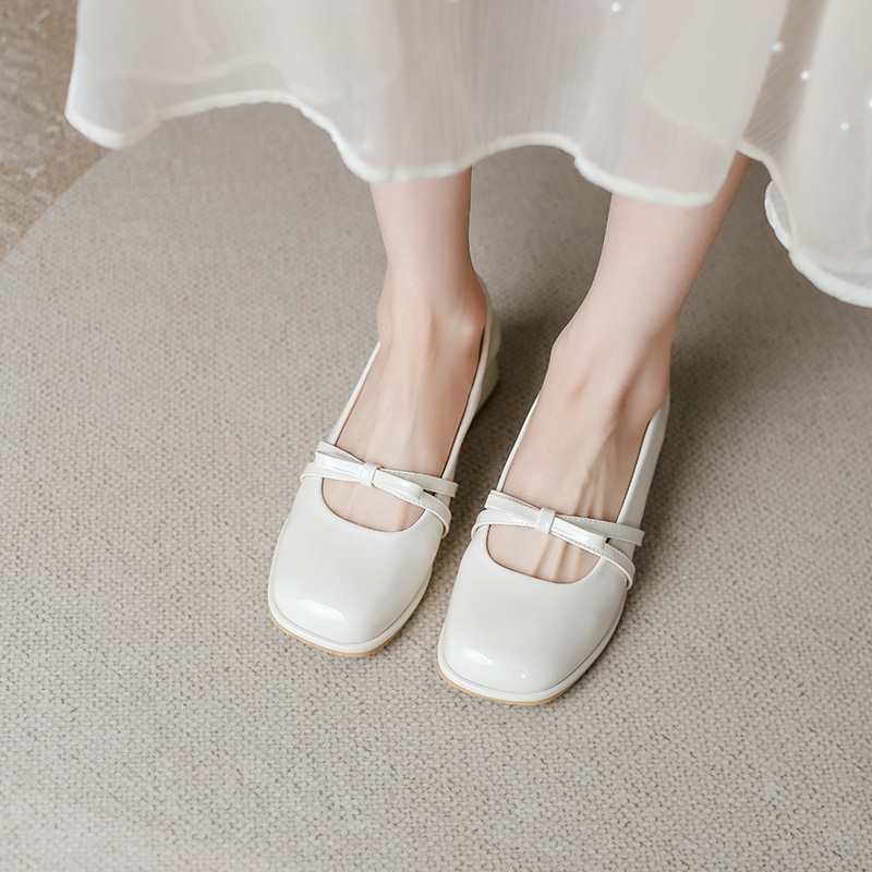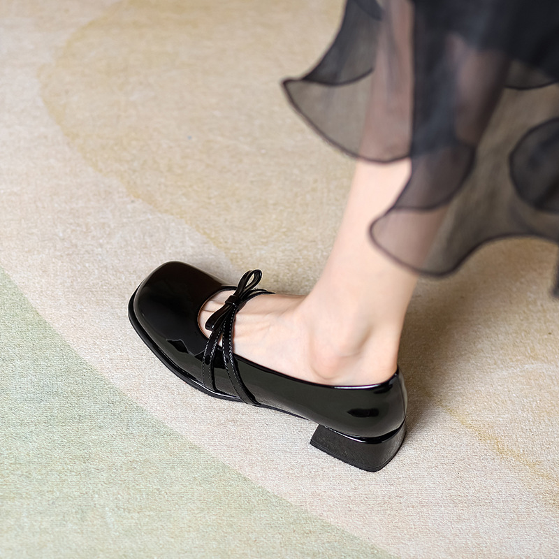2023 mới mùa xuân và mùa hè Pháp mũi vuông miệng nông giày Mary Jane giày da nhỏ nơ đỏ dày vừa gót giày đơn nữ