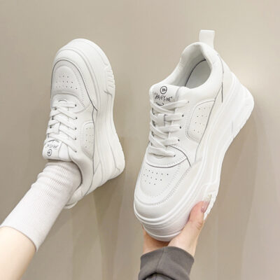 2023 Mới Mũi Tròn Đáy Dày Tăng Chiều Cao Da Mùa Xuân Và Mùa Hè Nhỏ Màu Trắng Giày Nữ Thể Thao Đa Năng Muffin giày Giày Thường