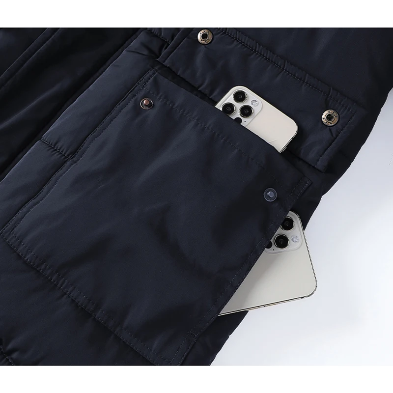 2023 Mới Nam Mùa Đông Làm Dày Nam Parkas Thoải Mái Mùa Đông Ấm Áp Có Mũ Trùm Đầu Parkas Nhiều Túi Ngoài Trời Mũ Có Thể Tháo Rời Nam PaMùa áp dụng:Mùa đông Cảnh áp dụng:Bình thường Nơi xuất xứ:Trung Quốc (Đại lục) Trang trí:NONE Kiểu tay áo:Thông thường Số mẫu:8899 Mũ trùm đầu:Có Loại:Thông thường Phần có thể tháo rời:Mũ Độ dày có thể tháo rời:Dày (Mùa đông) Chất liệu lót:Polyester Loại đóng cửa :dây kéo Cuff Phong cách:Thông thường Kiểu mẫu:Trơn Cổ áo:Có Nood Phong cách:Bình thường Chiều dài quần áo:Thông thường Chất liệu:Polyester Xuất xứ:Trung Quốc đại lục CN:Phúc Kiến Loại áo khoác ngoài:Áo khoác Giới tính: NAM Loại sản phẩm:Áo khoác ngoài & Áo khoác Màu sắc:Đen Quần áo màu xanh đậm :Độ dày ấm
