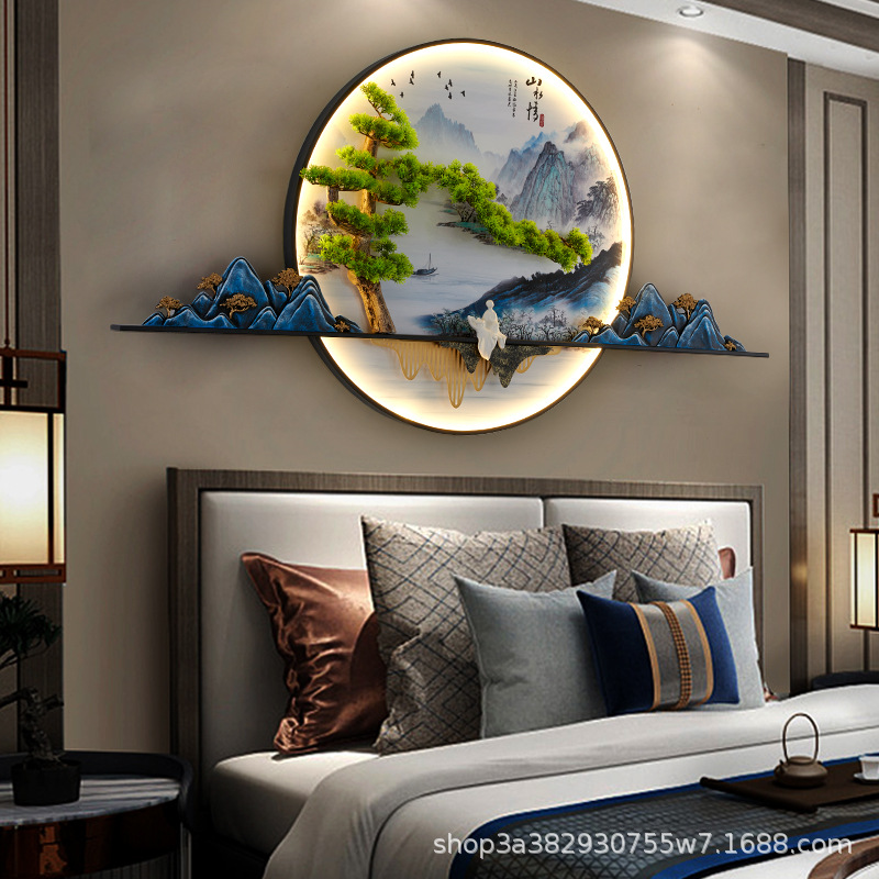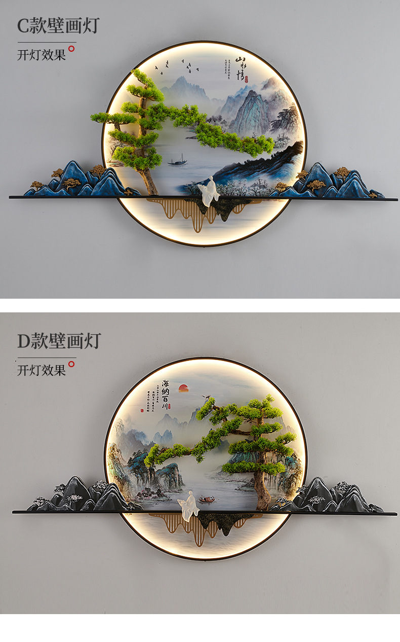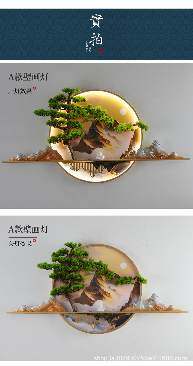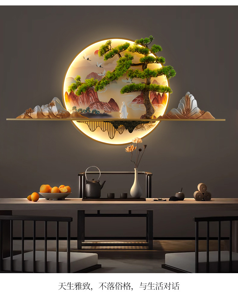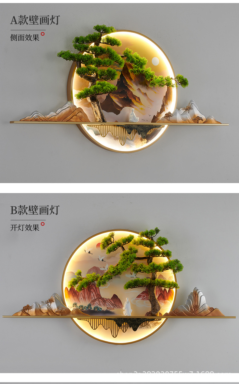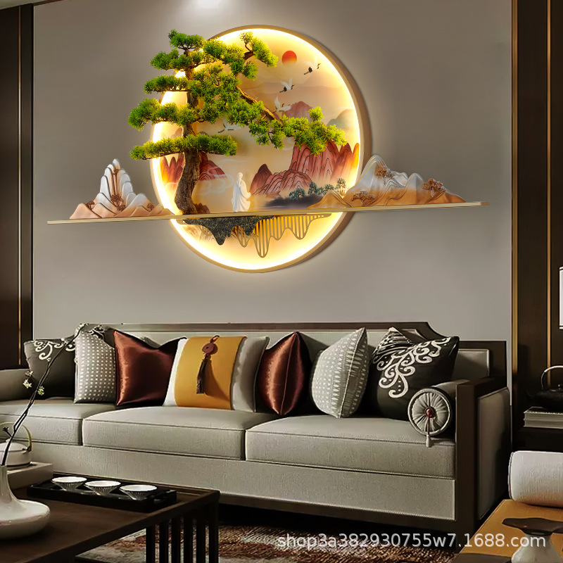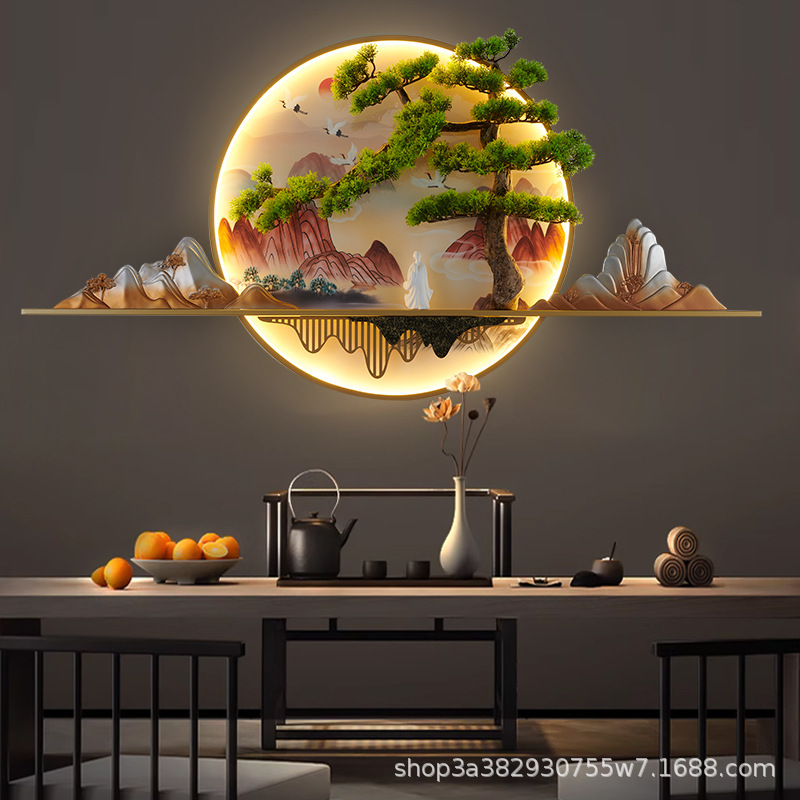 2023 Mới phong cách Trung Hoa Zen bức tranh tường đèn chào đón cây thông nhập tranh phong cảnh đèn nền phòng trà tranh trang trí tường đèn đèn tường