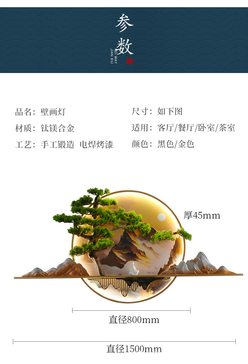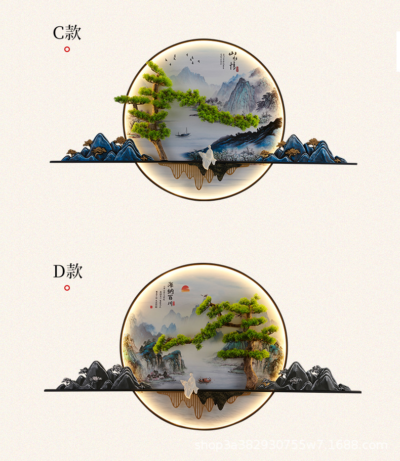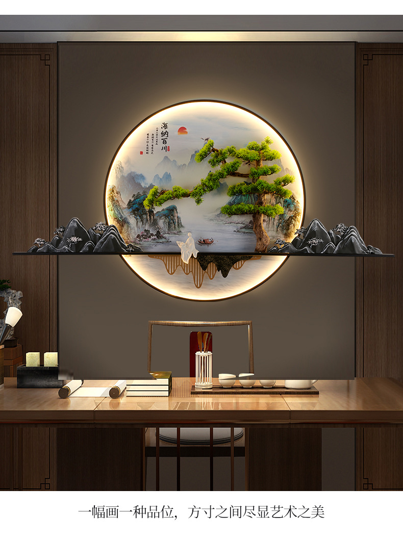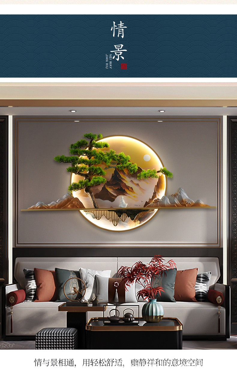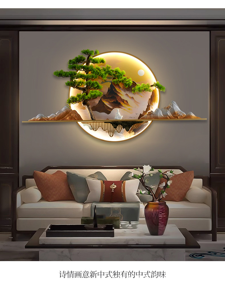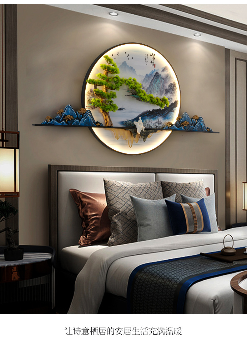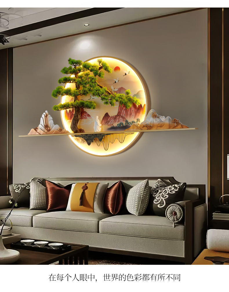2023 Mới phong cách Trung Hoa Zen bức tranh tường đèn chào đón cây thông nhập tranh phong cảnh đèn nền phòng trà tranh trang trí tường đèn đèn tường