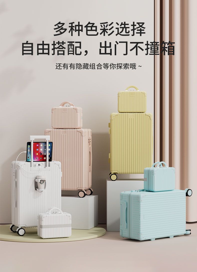 2023 Mới Retro vali nữ Xe Đẩy Ốp Lưng Sinh Viên Nam Vali Đa Năng Bánh Bao Da Mã Chức Năng Hộp