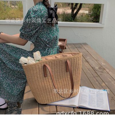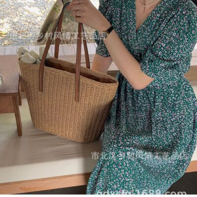 2023 mới rơm dệt túi mùa hè di động đơn giản dệt túi đeo vai kỳ nghỉ túi đi biển vuông nhỏ túi túi nữ