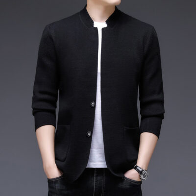 2023 Mới Sỉ Thu Đông Áo Len Nam Cổ Đứng Dệt Kim Cardigan Dài Tay Hàn Quốc Áo Khoác Thường