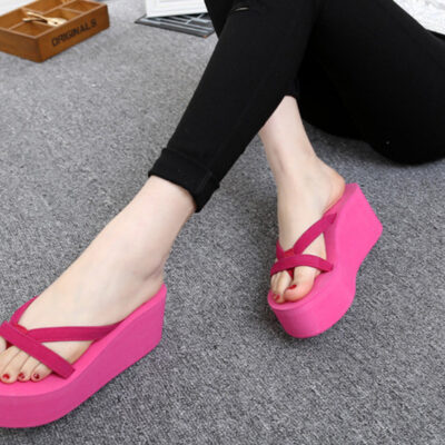 2023 Mùa Hè Mới Cao Gót Nền Tảng Dép Nêm Nữ Chống Trơn Trượt Đi Biển Cho Dép Và Dép