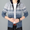 2023 Mùa Thu Đông Bóng Chày Cổ Áo Khoác Nam Nỉ Cardigan Áo Len Nam Dệt Kim Ngoại Thương Cotton Áo Khoác Nam