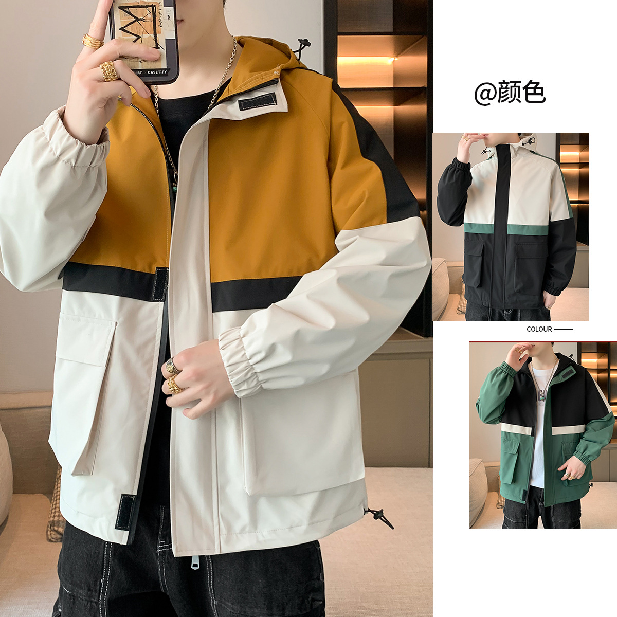 2023 mùa xuân mới có mũ trùm đầu áo khoác nam dụng cụ xu hướng thời trang ngoài trời gió tất cả các trận đấu rời