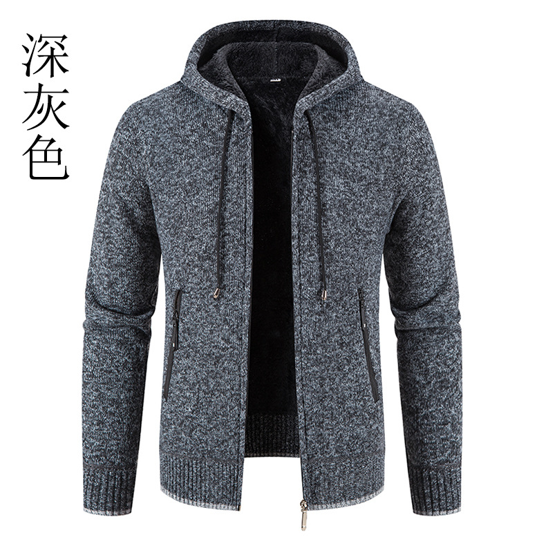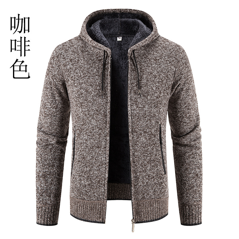2023 Nam Thu Đông Mới Nam Dệt Kim Có Mũ Cổ Cardigan Trẻ Trung Thời Trang Hàn Quốc Dây Kéo Áo Len Áo Khoác