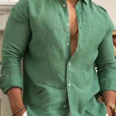 2023 Ngoại Thương Amazon Âu Mỹ Vải Lanh Cotton Màu Áo Sơ Mi Nam Trẻ Trung Thường Ngày