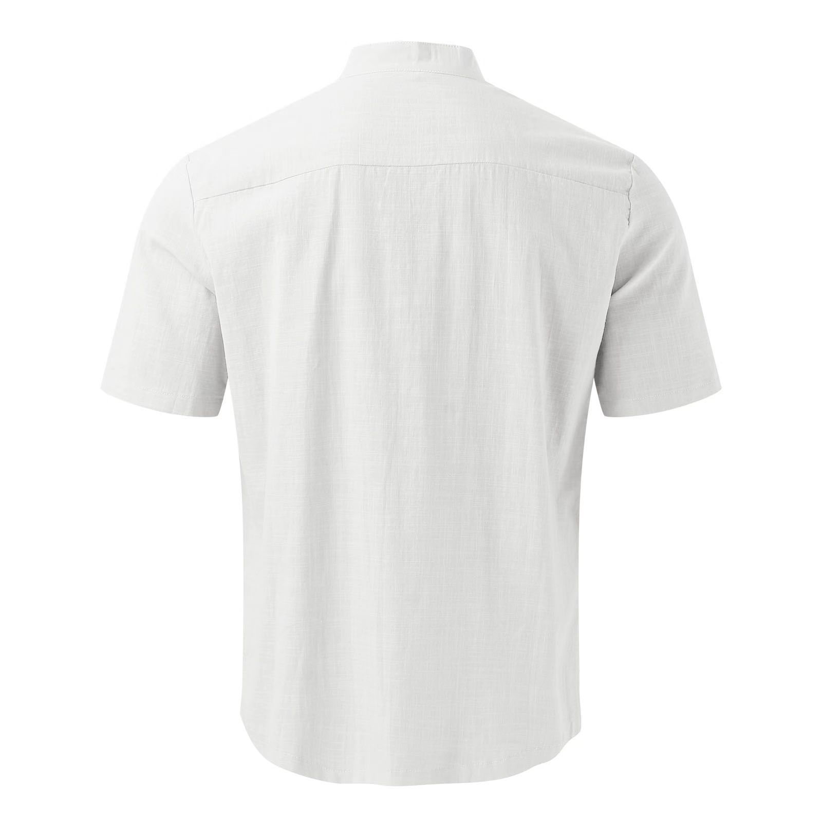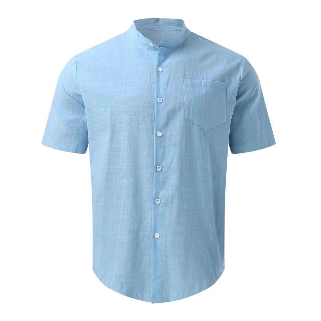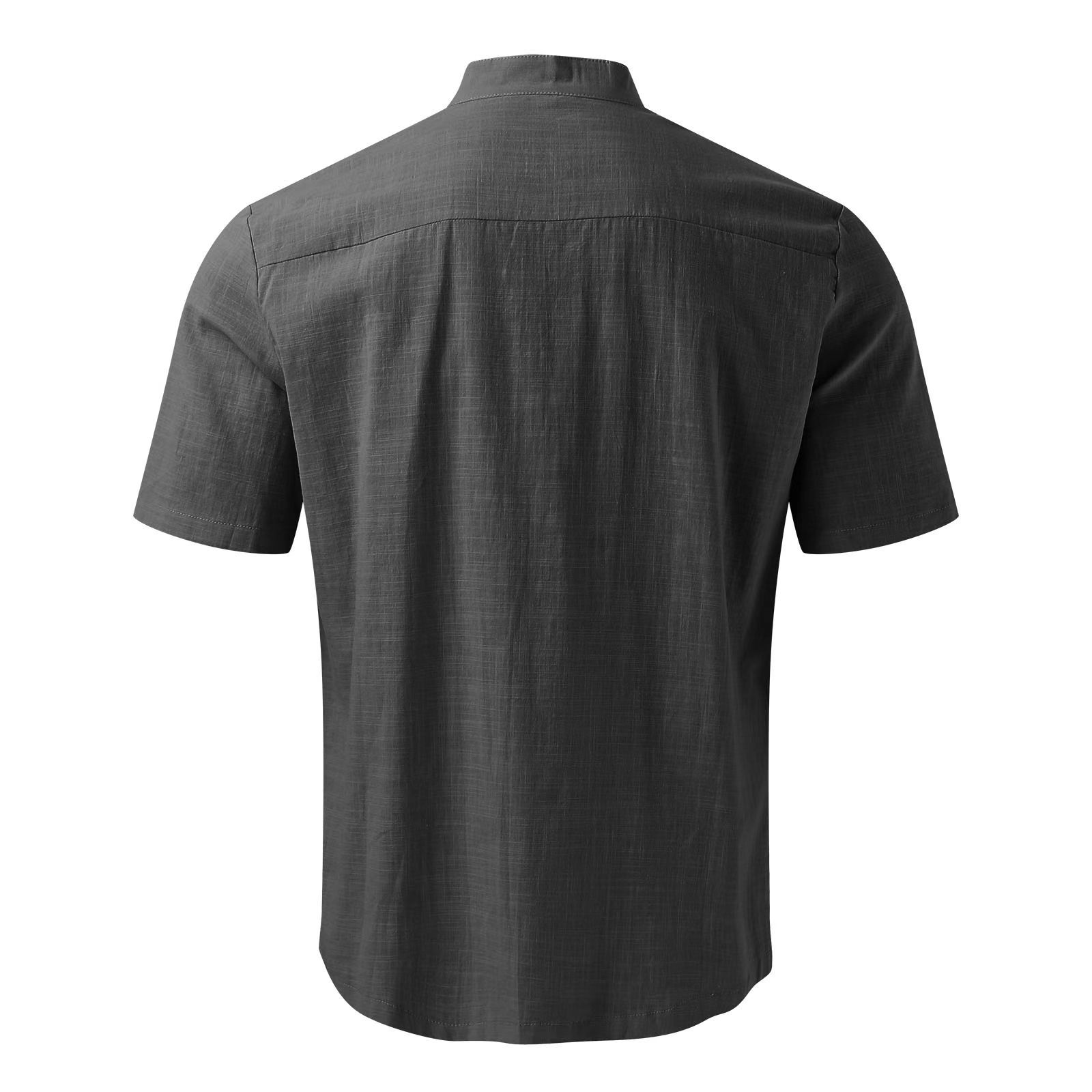 2023 Ngoại Thương Nam Amazon Áo Sơ Mi Linen Cotton Ngắn Tay Cổ Đứng Mỏng Áo Sơ Mi Nam Vị Trí Lớn