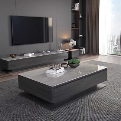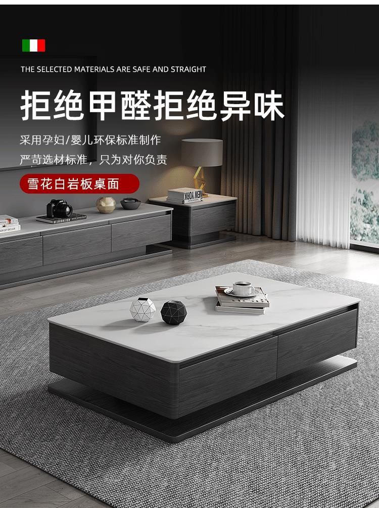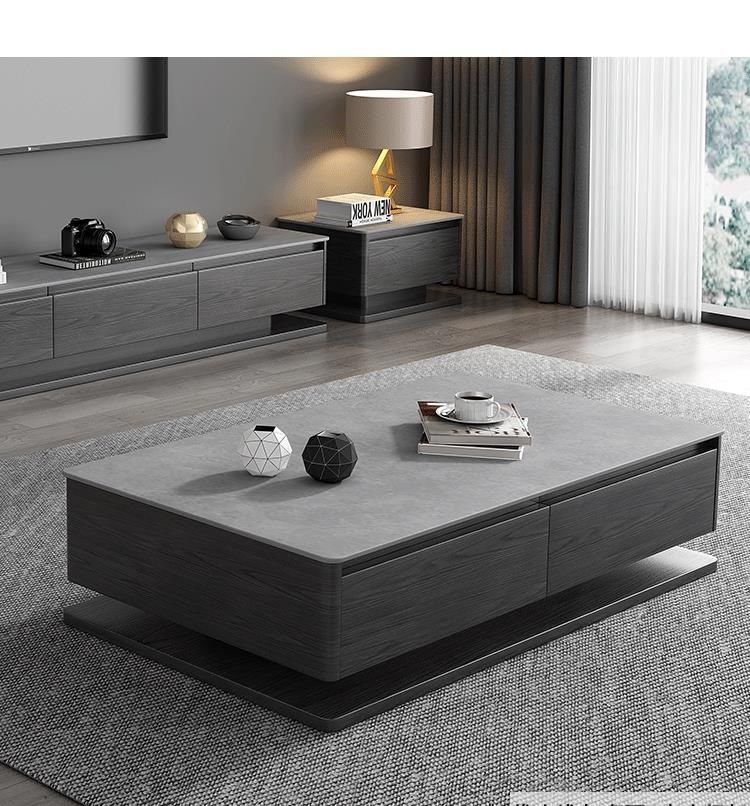 2023 nhà phòng khách bàn cà phê đơn giản hiện đại phong cách sáng tạo đá phiến ánh sáng sang trọng đá phiến bàn tủ TV