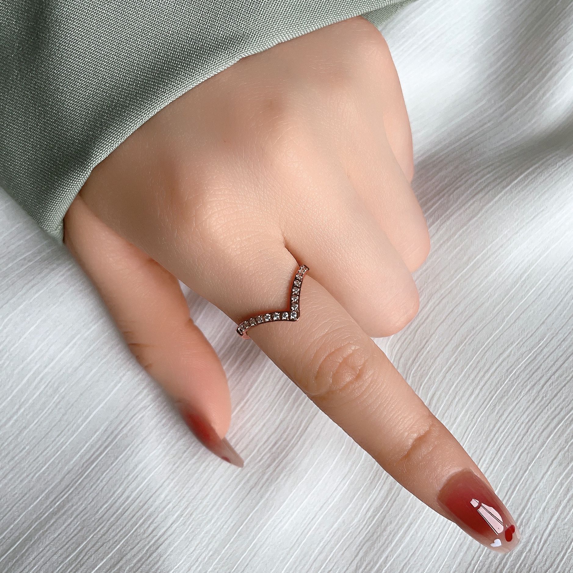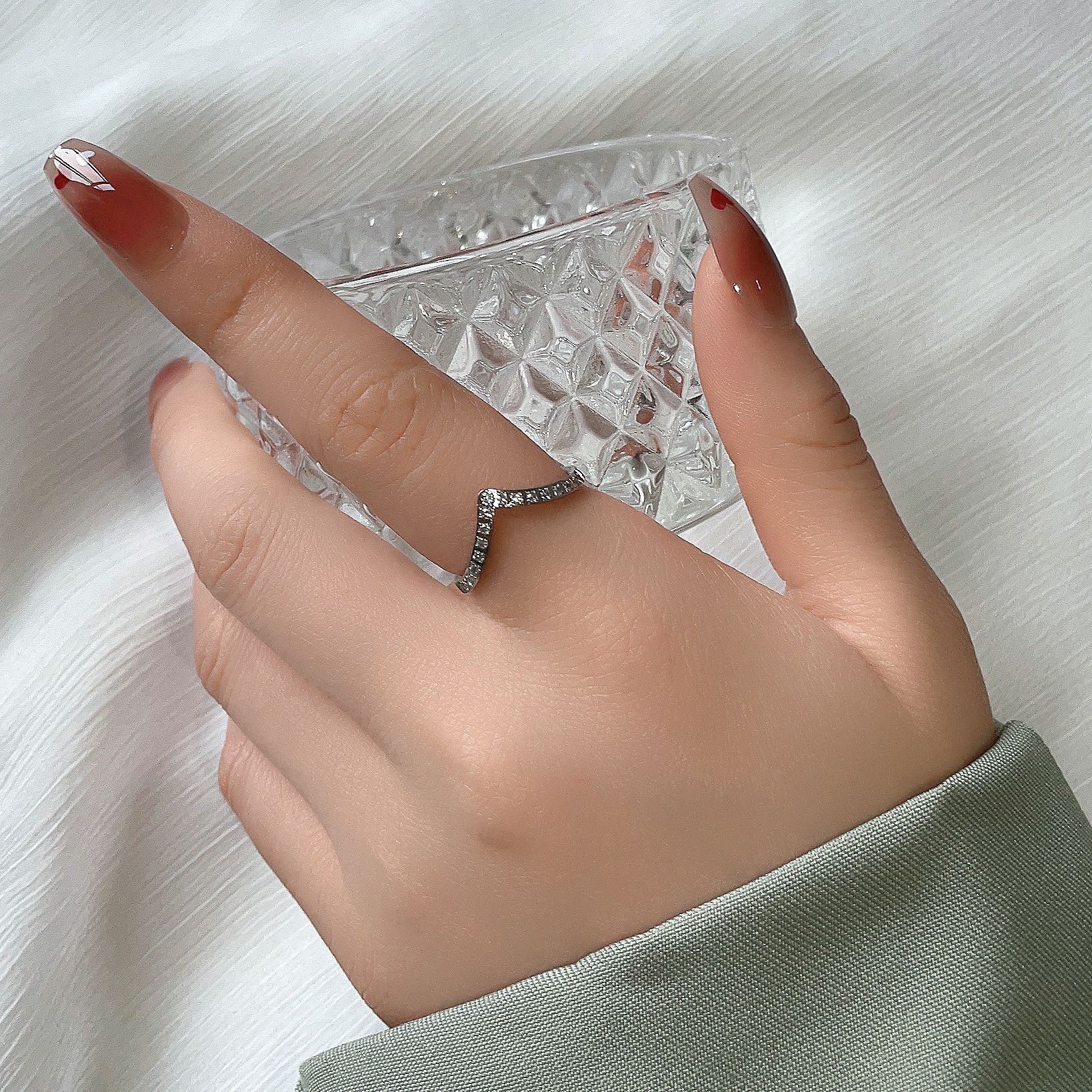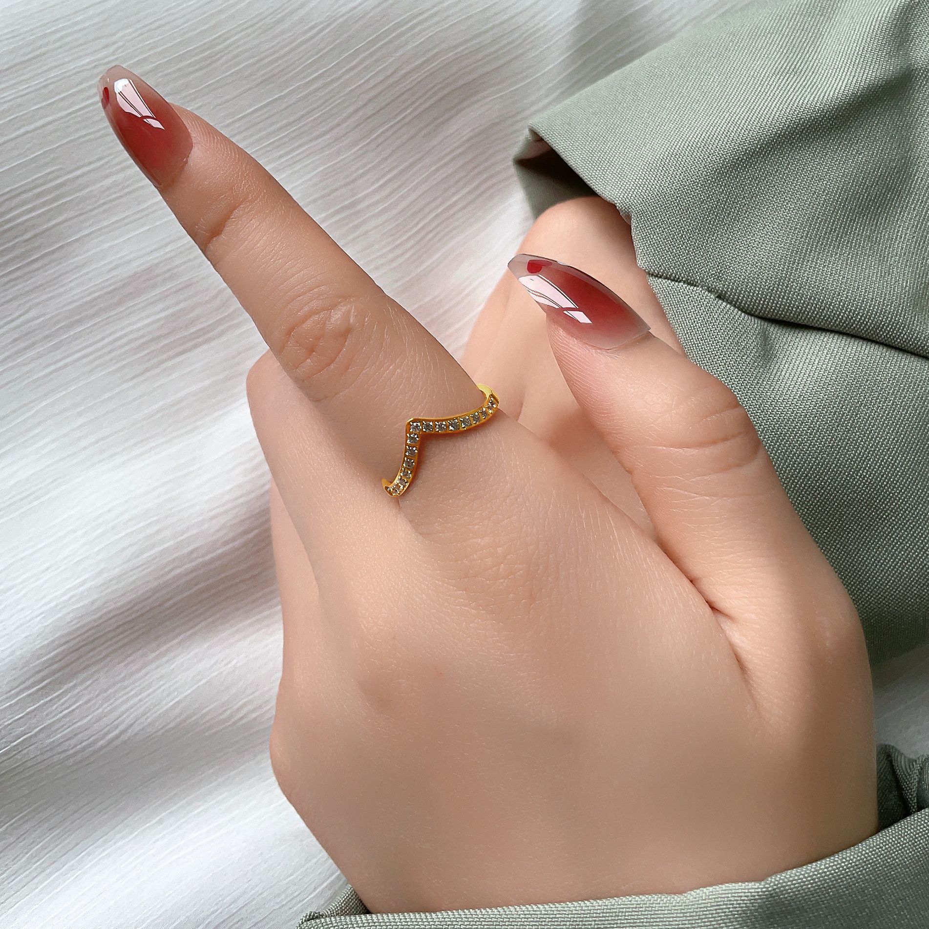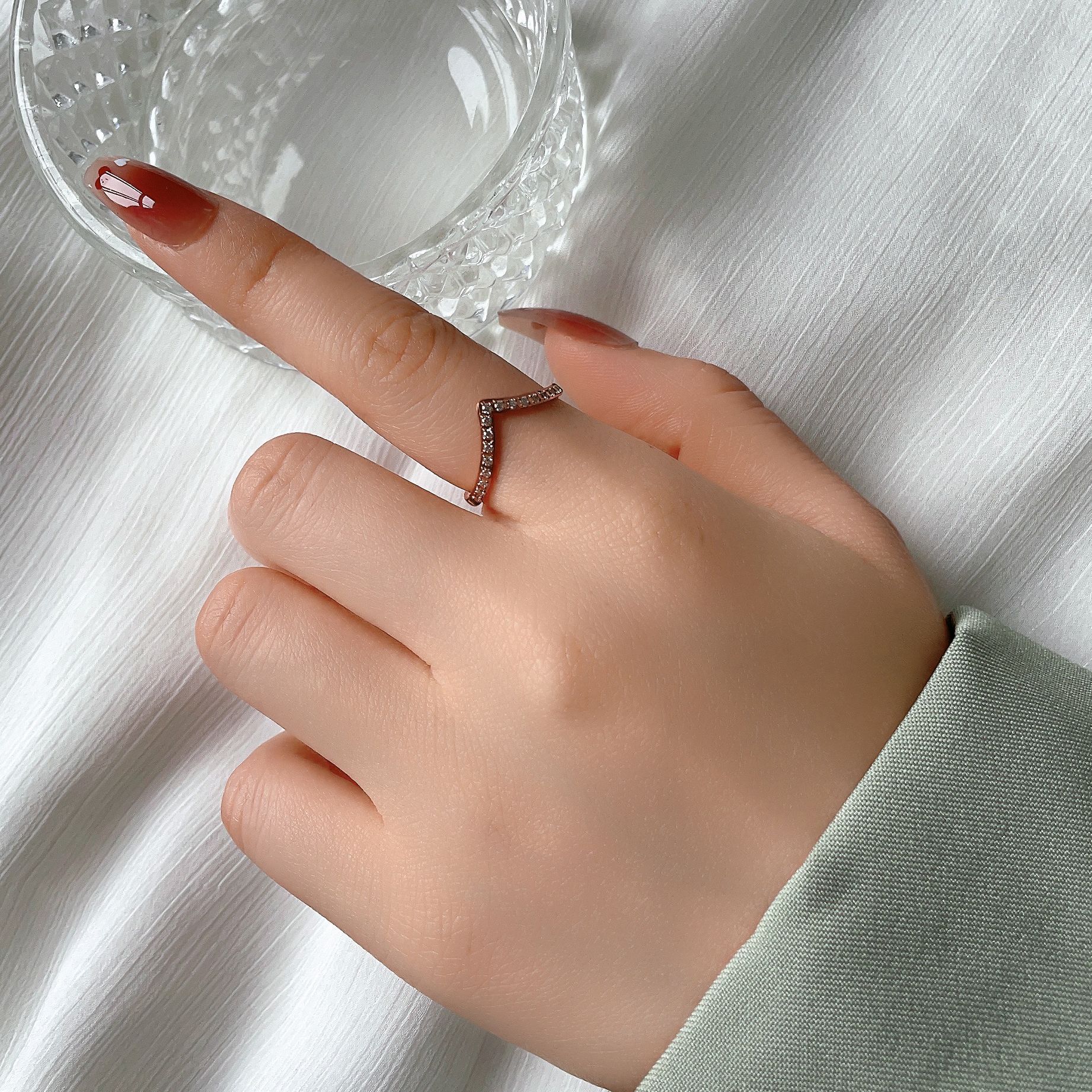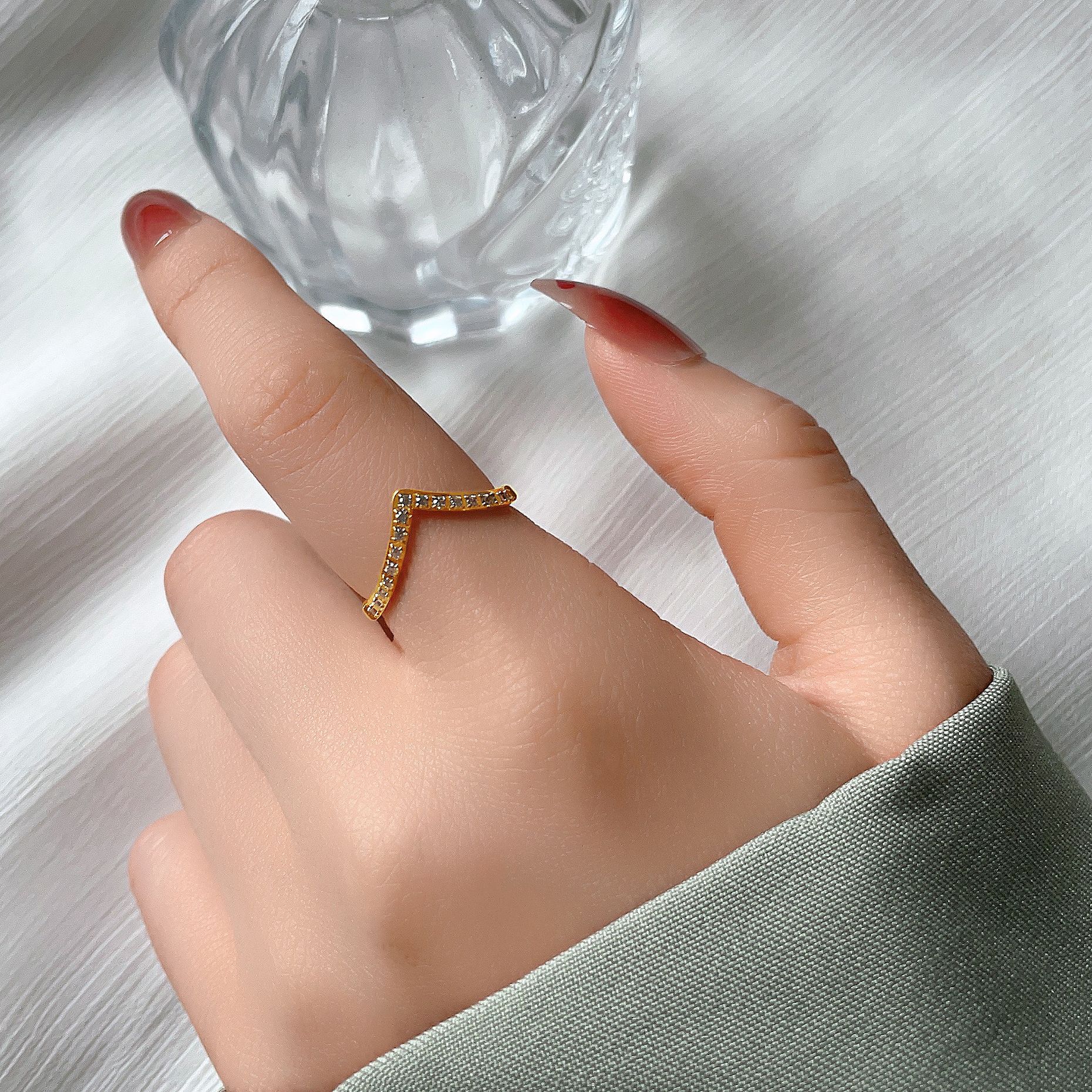 2023 nhẫn kim cương hình chữ V khảm siêu nhỏ CNC xuyên biên giới mới dành cho nữ bằng thép titan thiết kế tiên tiến cảm giác không phai nhẫn ngón trỏ nhẫn