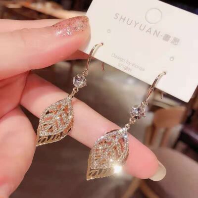 2023 phong cách mới qua đêm phong phú bông tai dài rhinestone zircon thời trang Hàn Quốc phù hợp với tất cả các trận đấu bông tai lá phong cách màu đỏ nóng bỏng