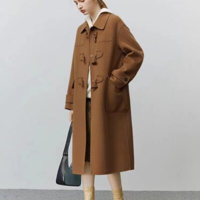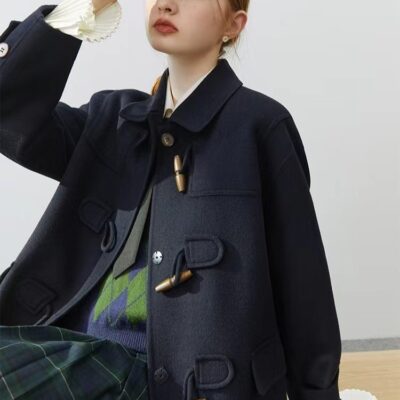 2023 Phong Cách Pháp FS Tính Khí Đi Làm Đại Học Còi Gió Khóa 2 Mặt Áo Khoác Len Nữ Thu Đông Dài Giữa Áo Khoác Lỏng Lẻo