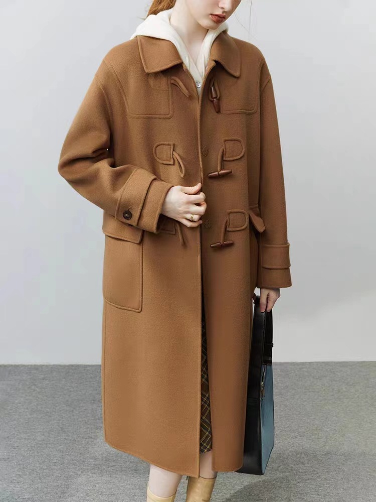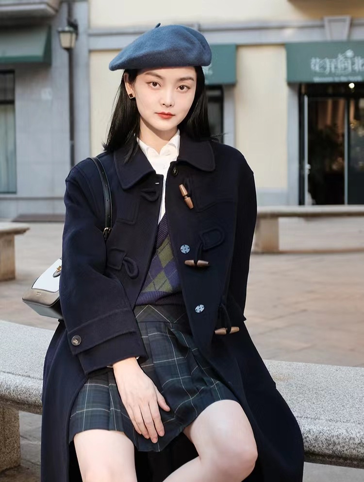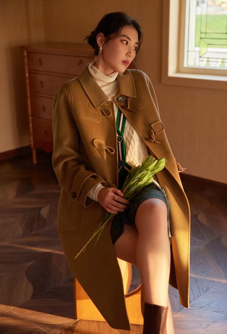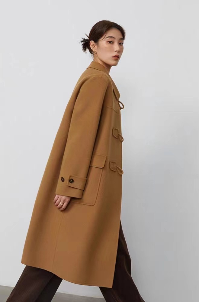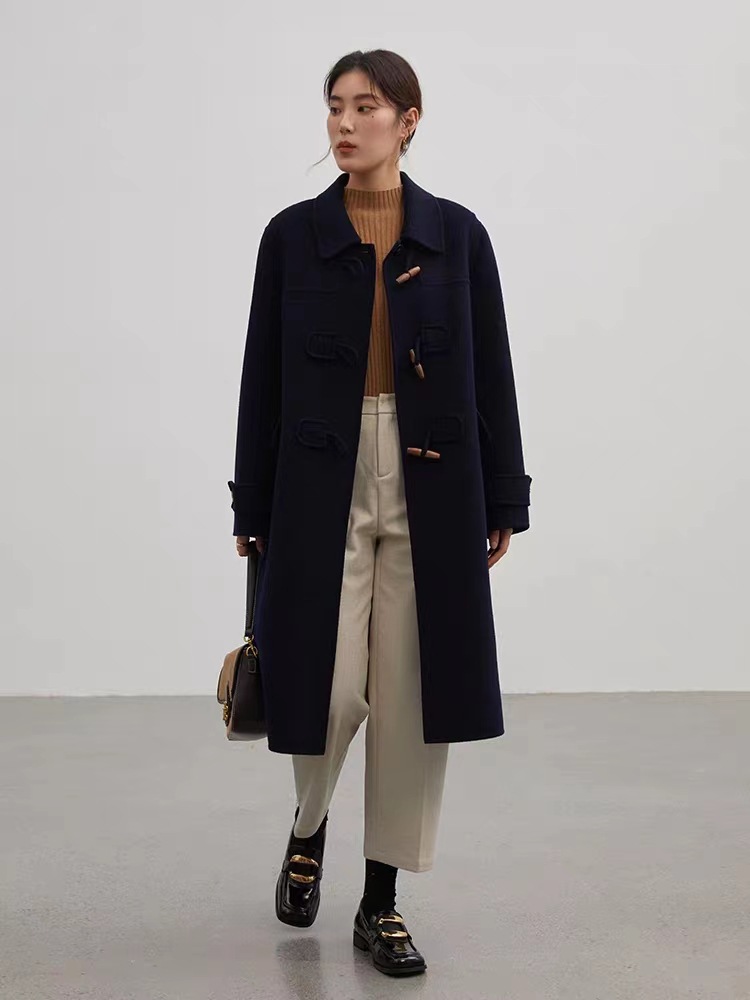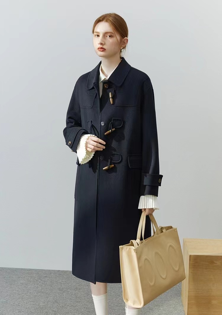 2023 Phong Cách Pháp FS Tính Khí Đi Làm Đại Học Còi Gió Khóa 2 Mặt Áo Khoác Len Nữ Thu Đông Dài Giữa Áo Khoác Lỏng Lẻo