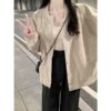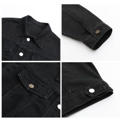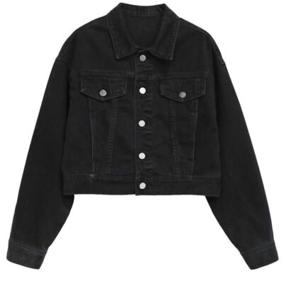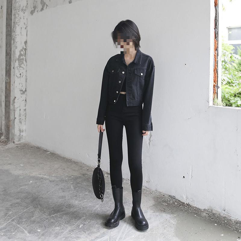 2023 phong cách retro mới dáng rộng áo khoác denim ngắn màu đen nữ phù hợp với áo khoác dài tay đầu mùa thu