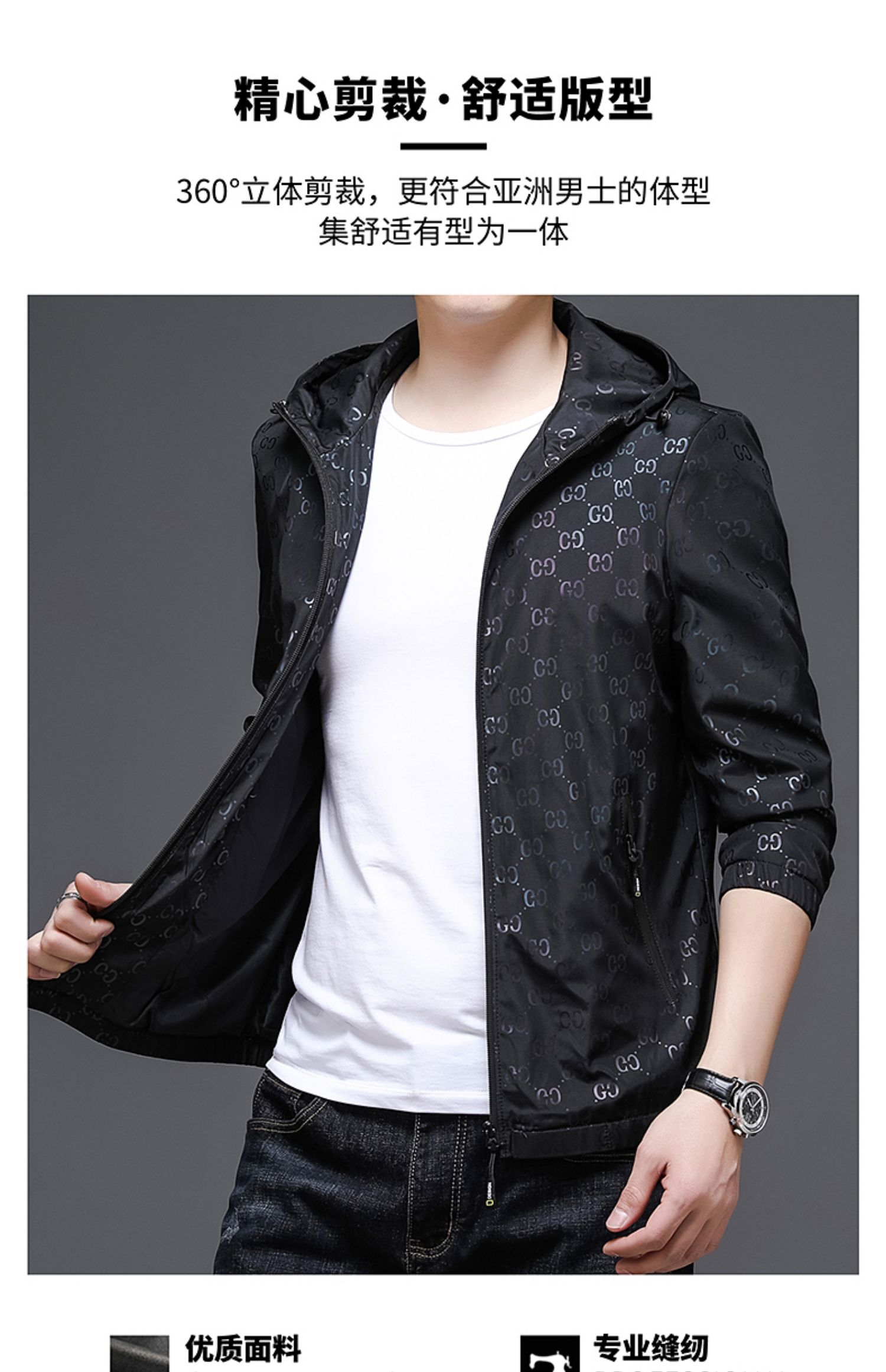2023 quần áo mới nam mùa hè quần áo mỏng có mũ trùm đầu xu hướng xuân thu áo khoác thường