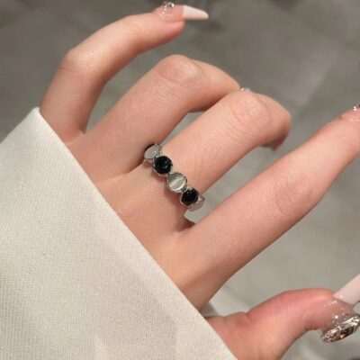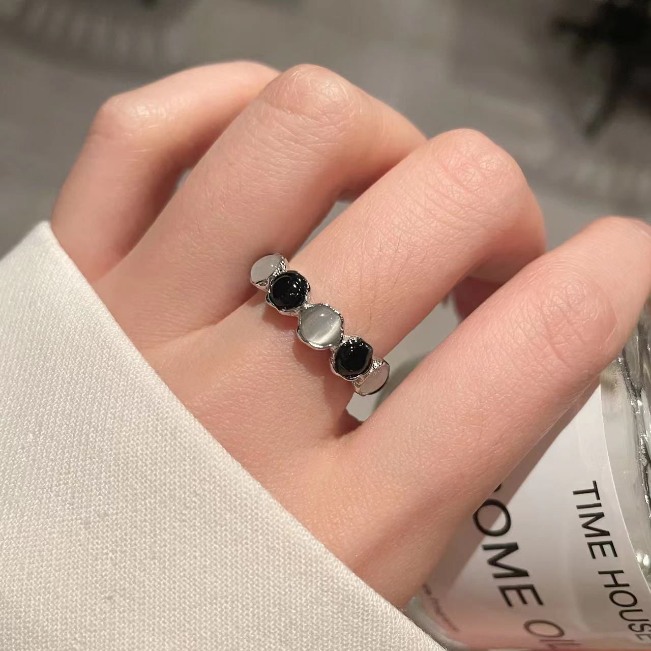 2023 thiết kế thích hợp bat opal cảm giác đá quý màu đen và trắng mở nhẫn nữ ins phong cách lạnh ngón tay kiểu Pháp