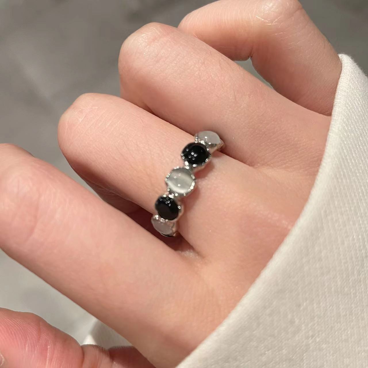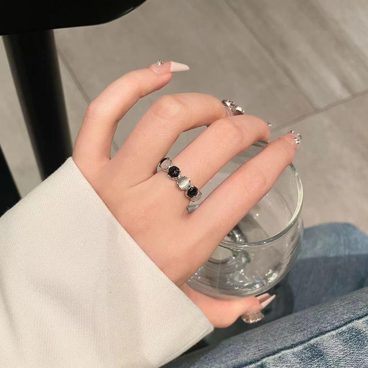 2023 thiết kế thích hợp bat opal cảm giác đá quý màu đen và trắng mở nhẫn nữ ins phong cách lạnh ngón tay kiểu Pháp