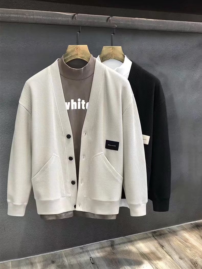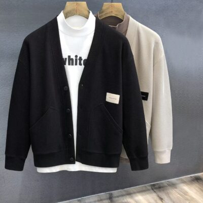 2023 Thu Đông Cổ Bóng Chày Áo Khoác Nam Hợp Thời Trang Trẻ Trung Màu Áo Khoác Xuân Thu Đẹp Trai Cổ Dệt Kim Cardigan Nam