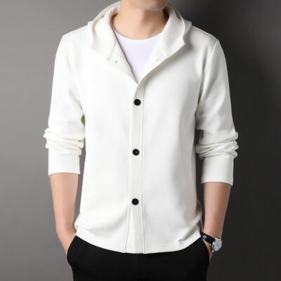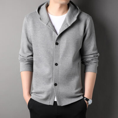 2023 trẻ trung và trung niên áo len nam xuân thu mới đồng màu có nón rời thường ngày áo khoác thể thao áo khoác
