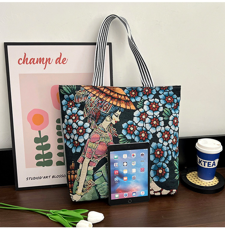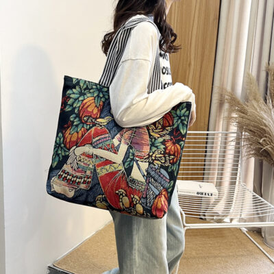 2023 Túi Mới Túi Nữ Thêu Thời Trang Retro Dung Tích Lớn Túi Mua Sắm Và Làm Việc Túi Đeo Vai Nữ