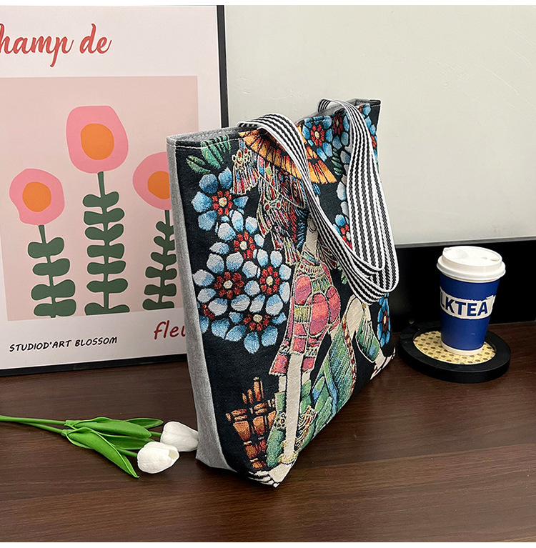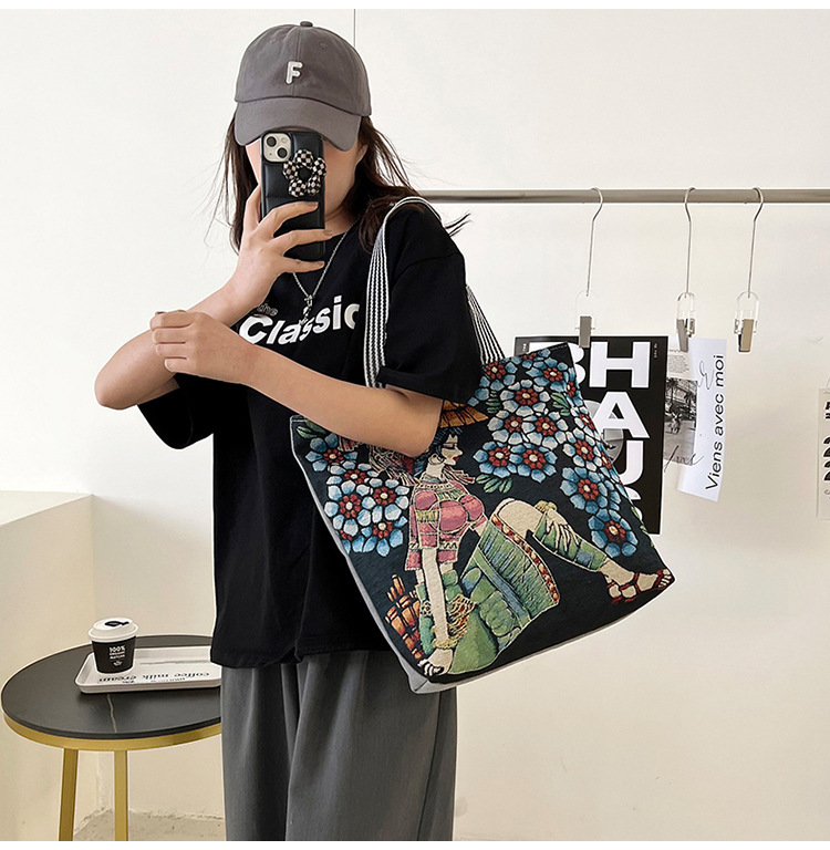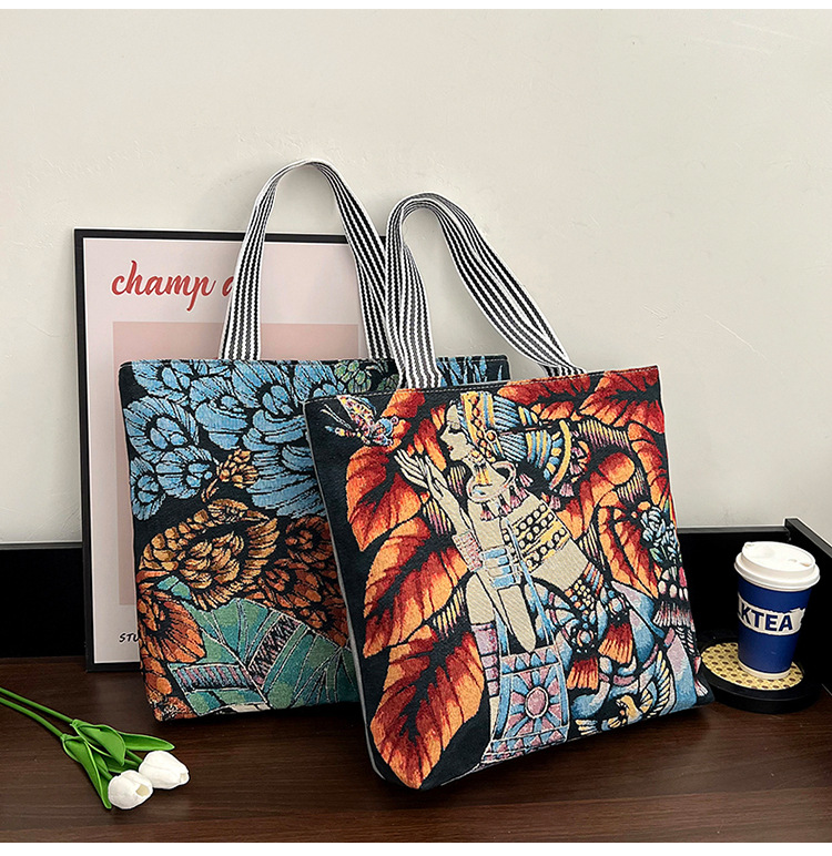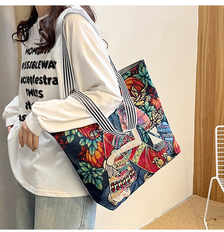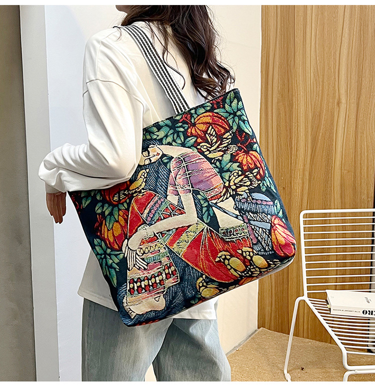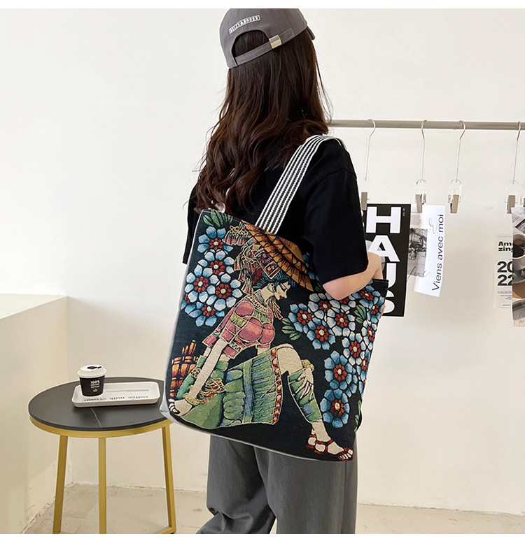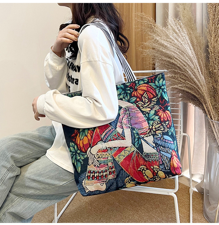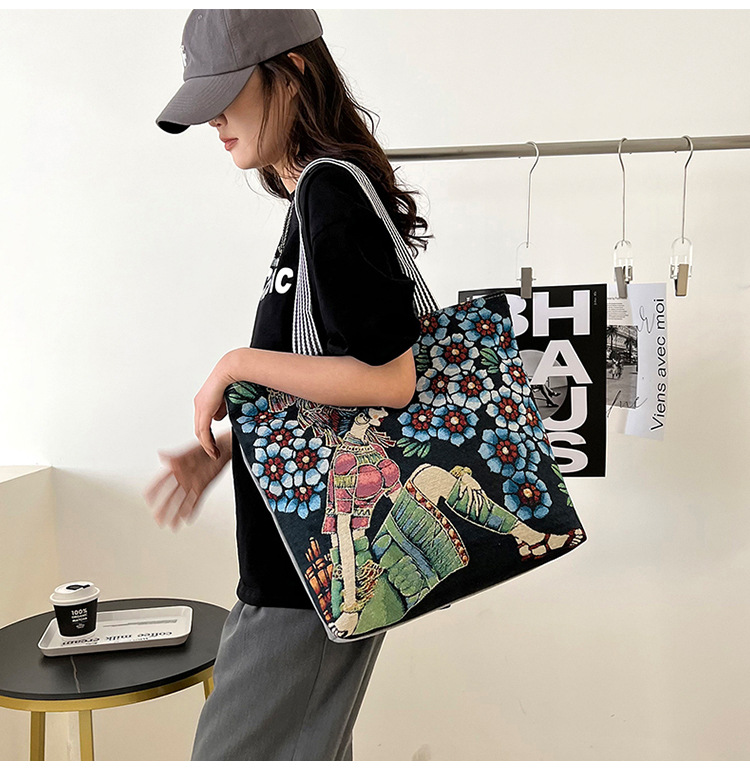 2023 Túi Mới Túi Nữ Thêu Thời Trang Retro Dung Tích Lớn Túi Mua Sắm Và Làm Việc Túi Đeo Vai Nữ