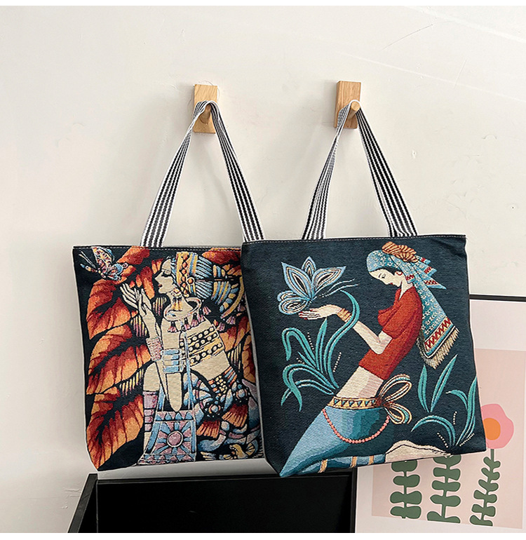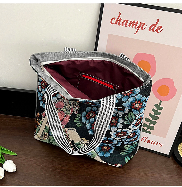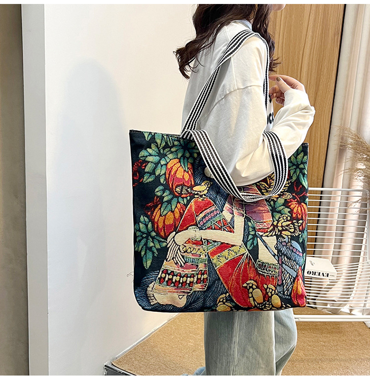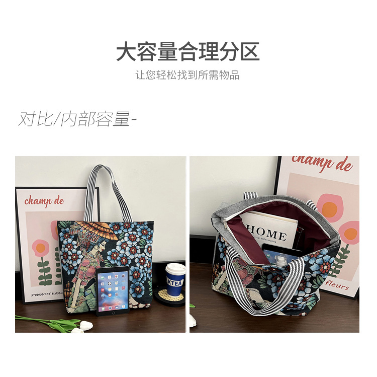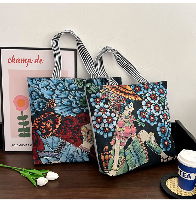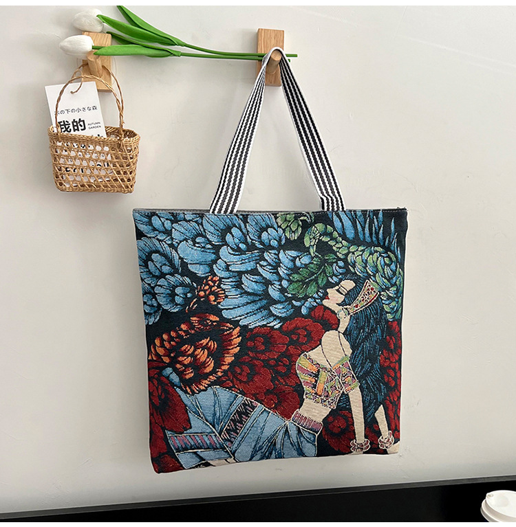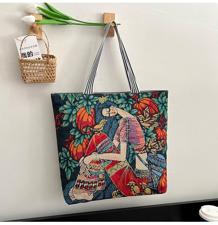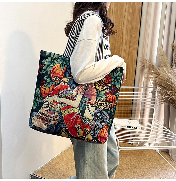 2023 Túi Mới Túi Nữ Thêu Thời Trang Retro Dung Tích Lớn Túi Mua Sắm Và Làm Việc Túi Đeo Vai Nữ