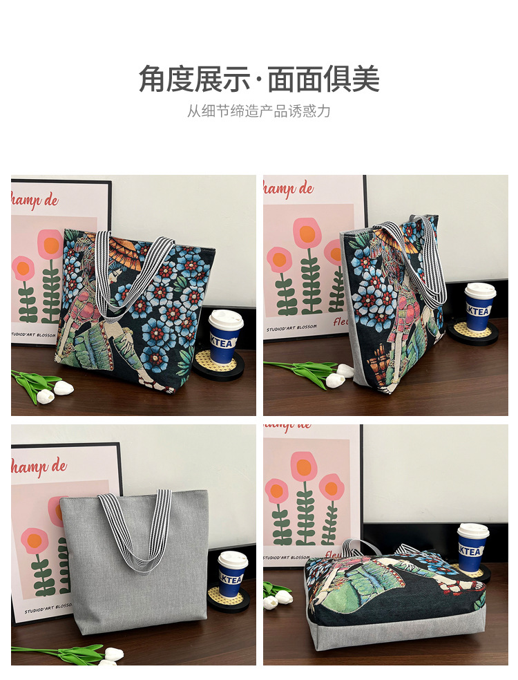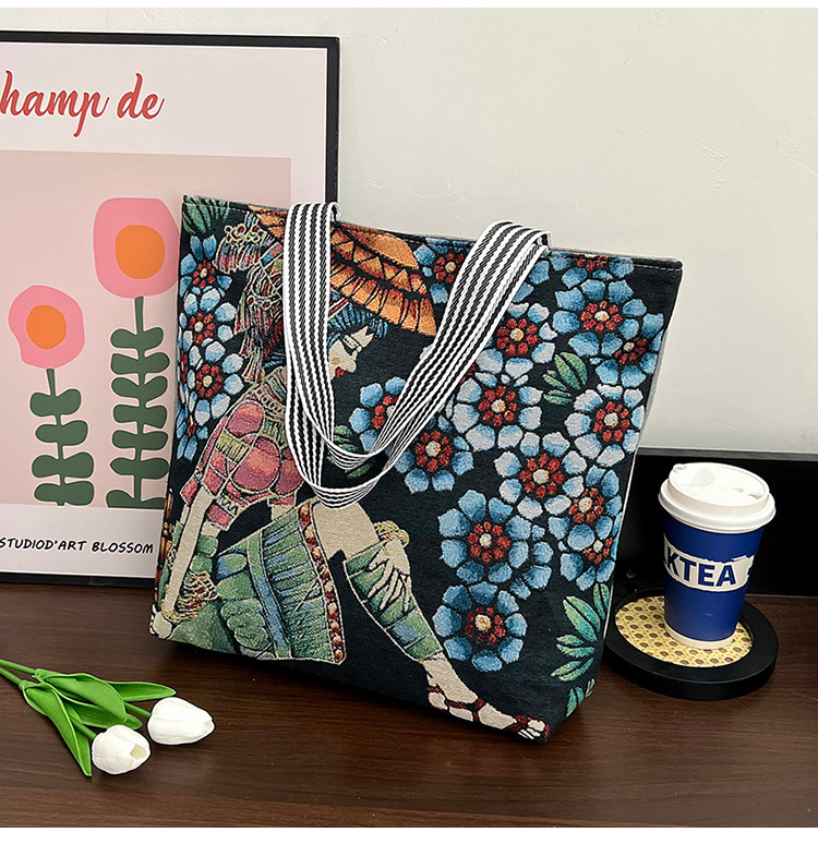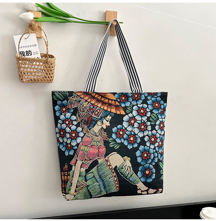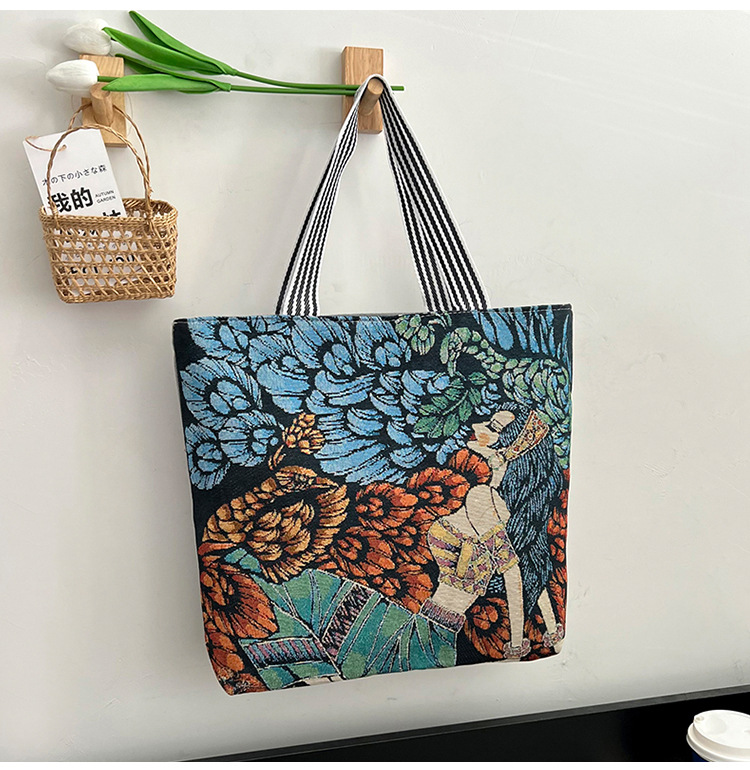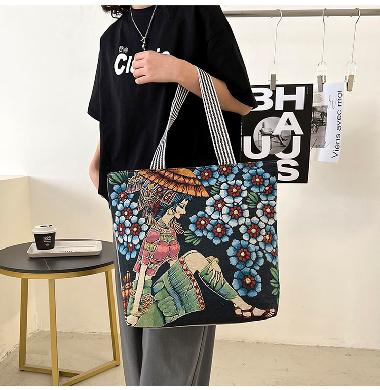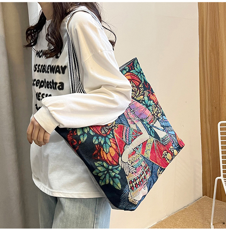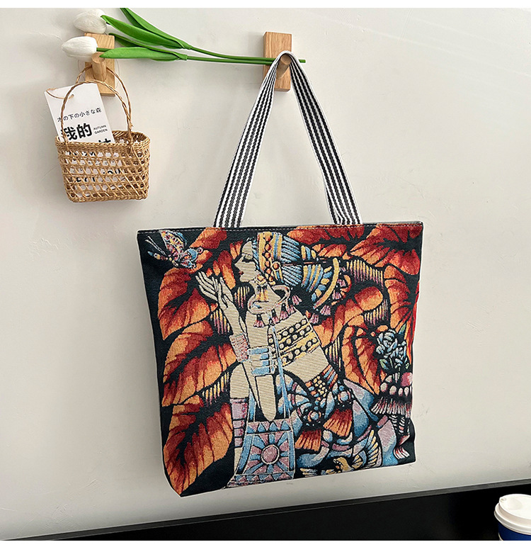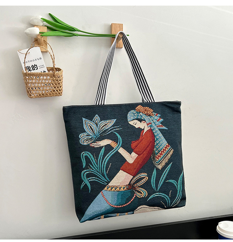 2023 Túi Mới Túi Nữ Thêu Thời Trang Retro Dung Tích Lớn Túi Mua Sắm Và Làm Việc Túi Đeo Vai Nữ