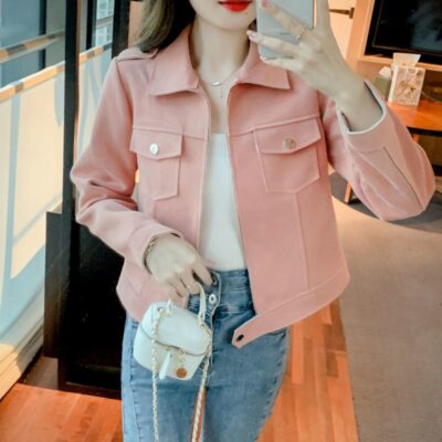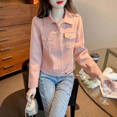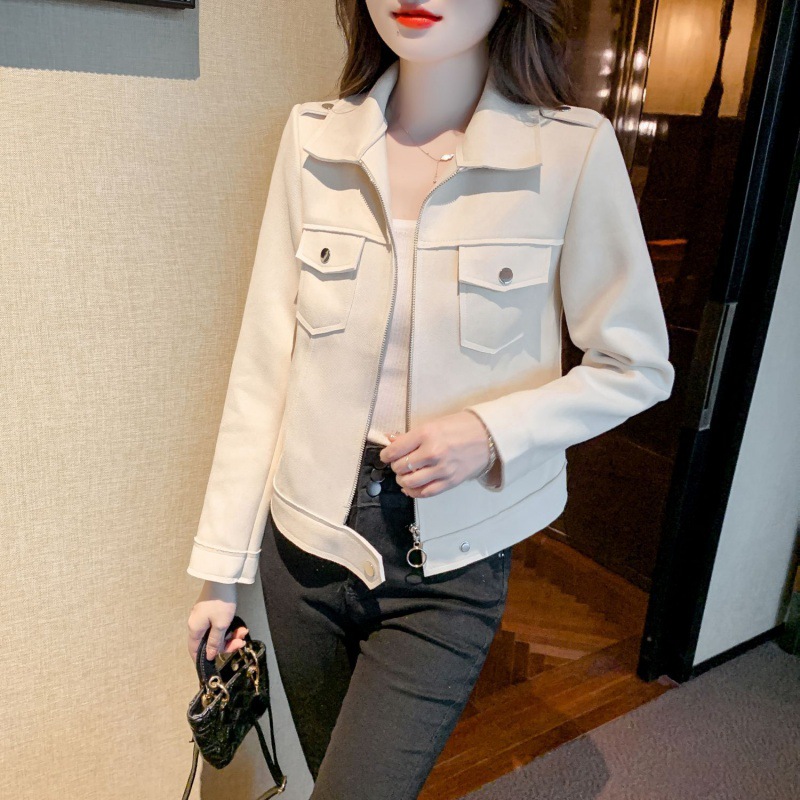 2023 xe máy mới áo khoác ngắn nữ dây kéo áo khoác mềm dày phổ biến năm nay phổ biến áo khoác vai trước