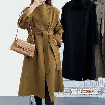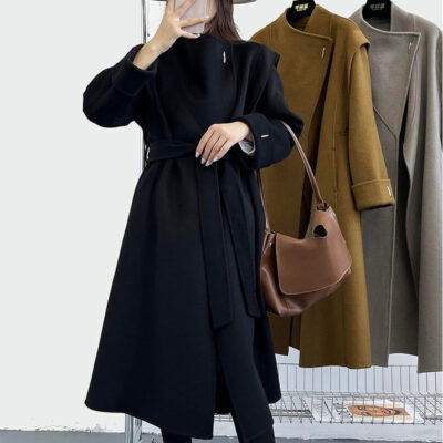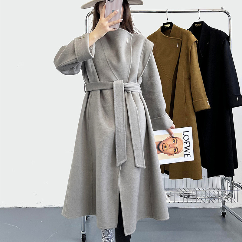 22 áo khoác len cashmere hai mặt màu đen mới cảm giác dài cao cấp cho nữ áo khoác len cao cấp có khí chất nhỏ cho nữ