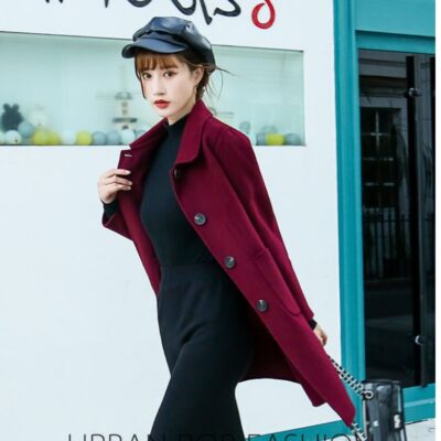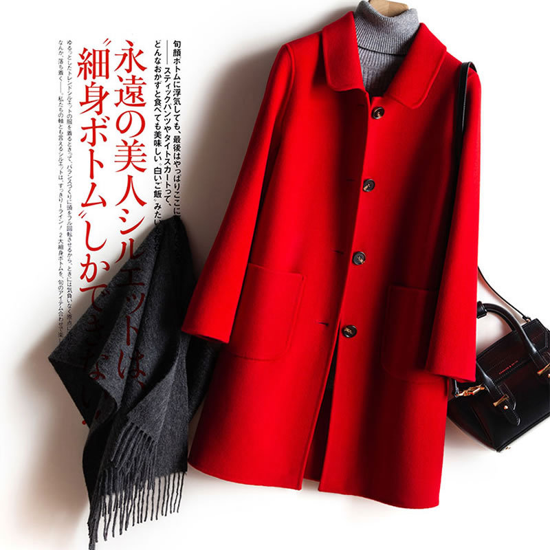 22 mùa thu đông mới len 2 mặt nhỏ thẳng len áo khoác len áo khoác len nữ phiên bản Hàn Quốc thường ngày