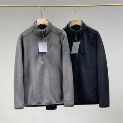 22 mùa thu đông mới nam công sở đi lại đơn giản thể thao thun nửa dây kéo áo thun cộng với áo len lông cừu đáy