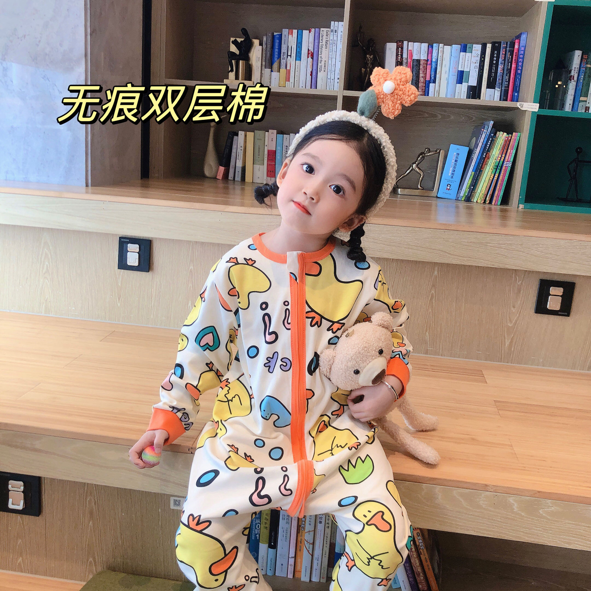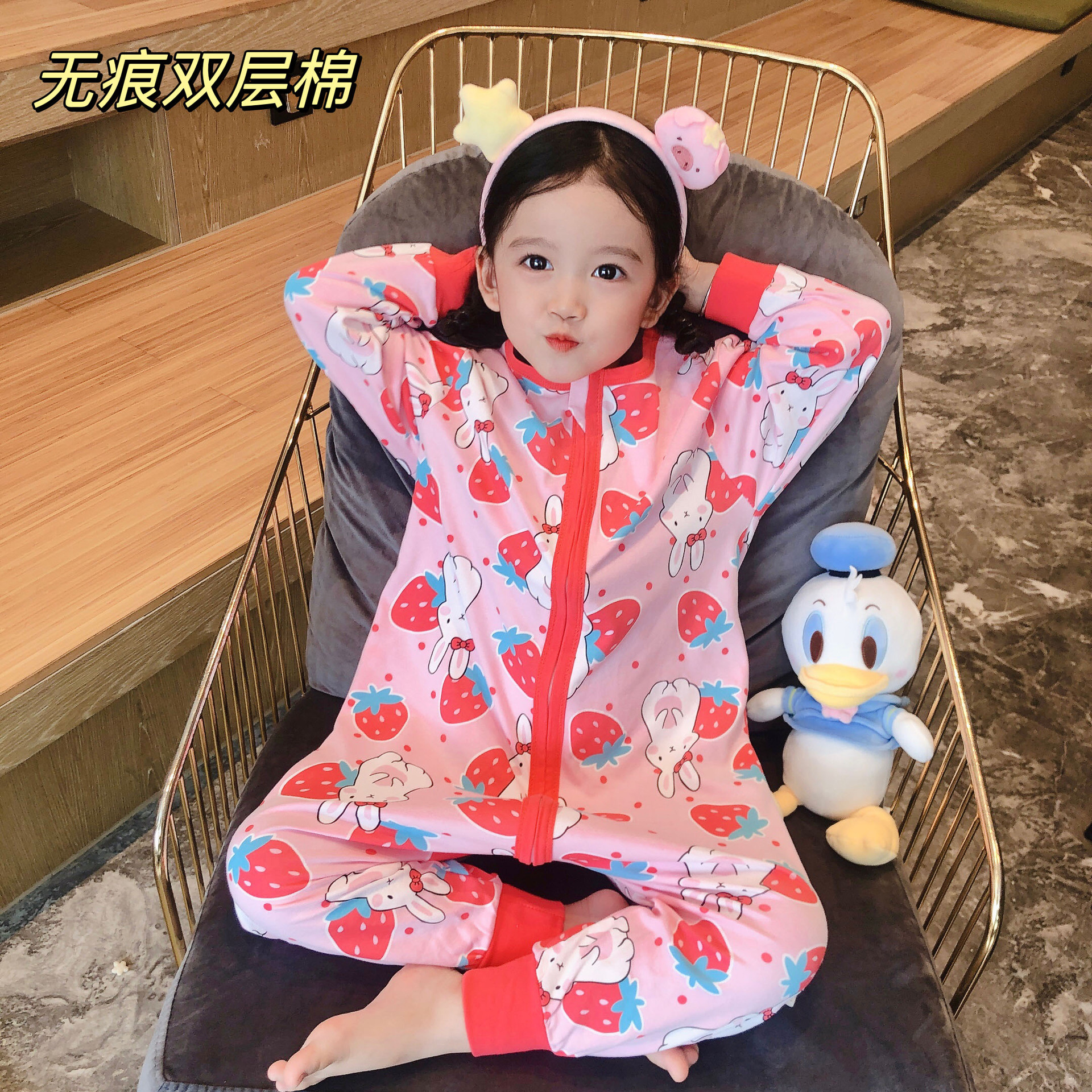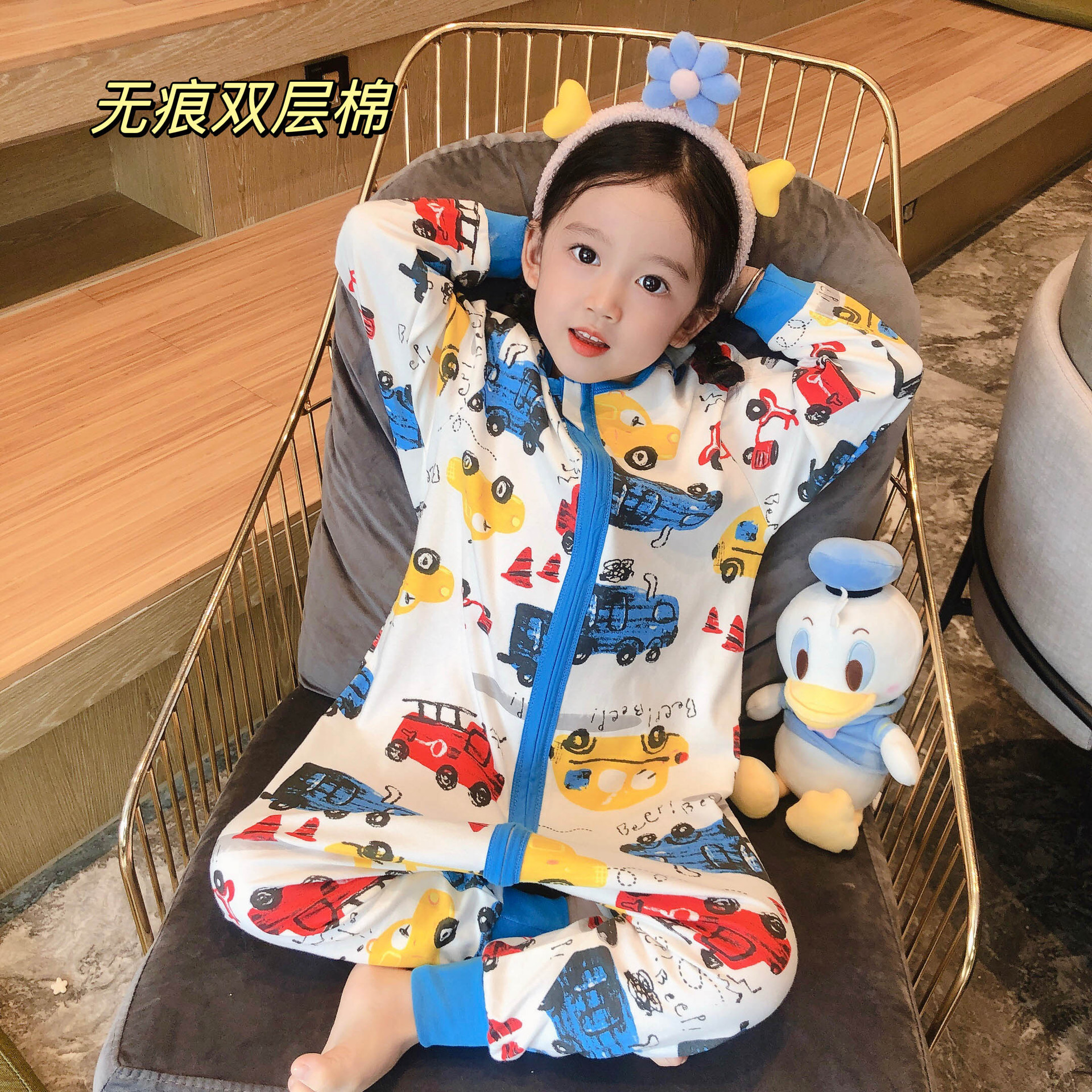 22 túi ngủ dài tay cotton hai lớp hoạt hình liền mạch quần áo leo núi chăn bông chống đá quần áo ở nhà