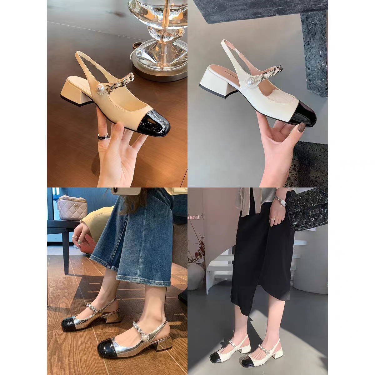 2203 xu hướng thời trang mới mùa hè Pháp giày cao gót đơn phối màu mũi tròn chunky gót Mary Jane giày nữ phù hợp với tất cả
