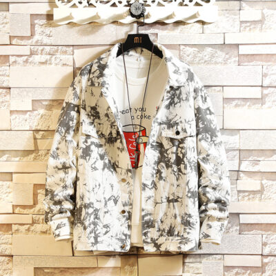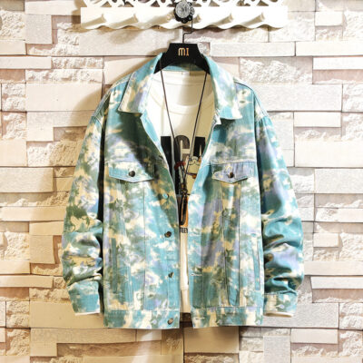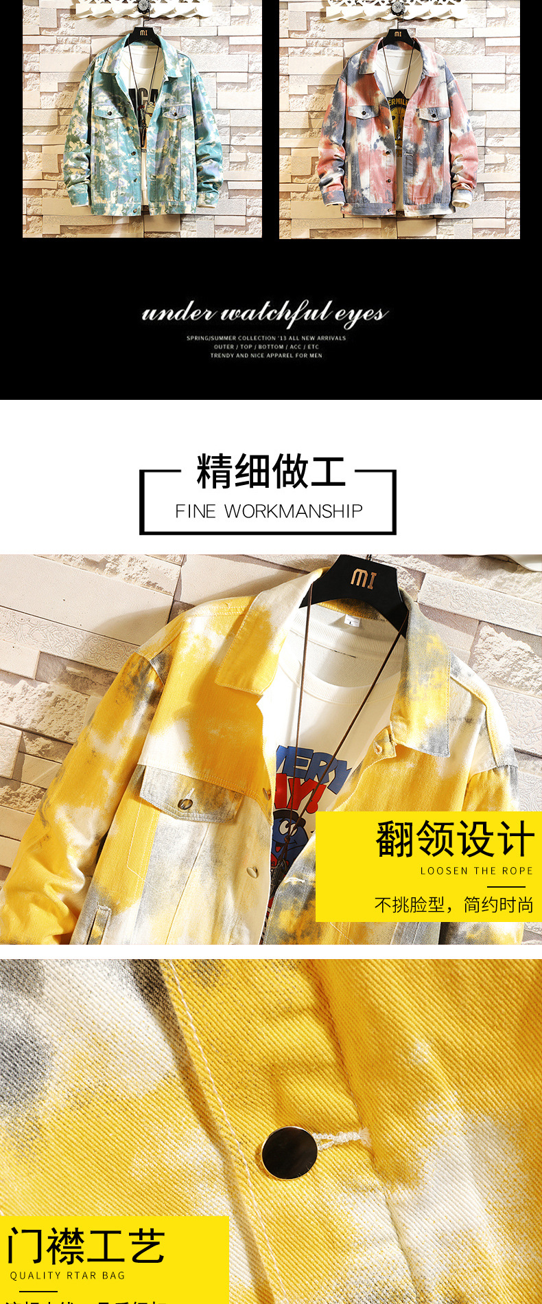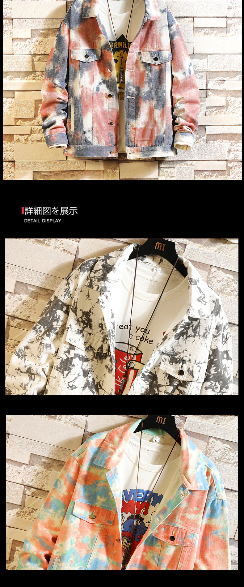 23 mùa thu nam mới họa tiết rằn ri áo khoác denim ngoại thương Nhật Bản size lớn thanh niên cá tính áo khoác cardigan