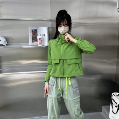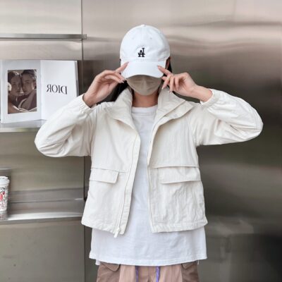 23 Mùa Xuân Mới Nữ Cổ Áo Đứng Có Mũ Áo Chống Gió Áo Khoác Ngắn Chống Gió Áo Khoác Thể Thao 0222j7