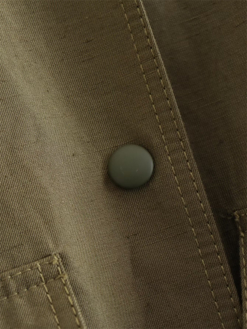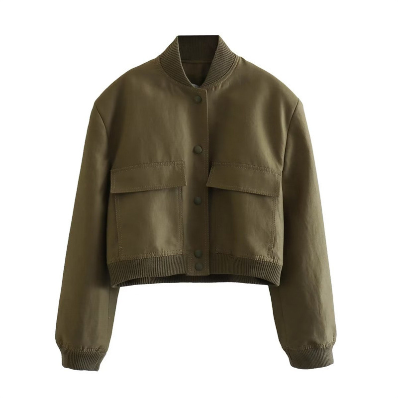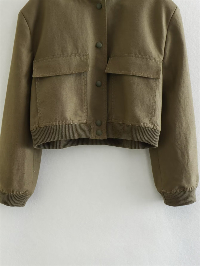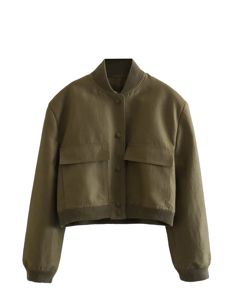 23 mùa xuân thời trang mới áo khoác cổ đứng màu trơn đơn giản nữ cá tính xu hướng gió nhiều túi ngực áo khoác