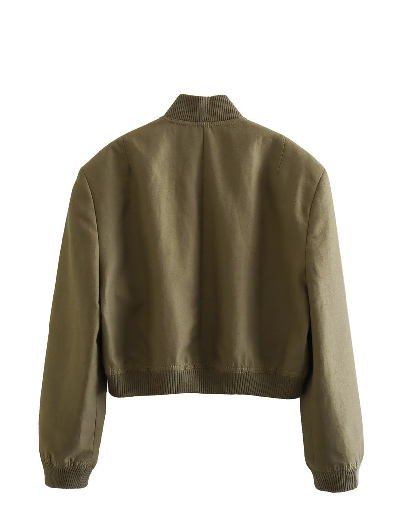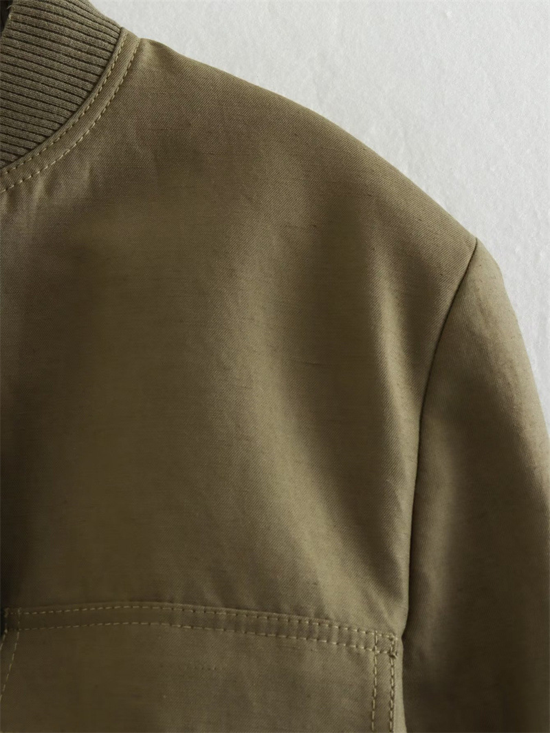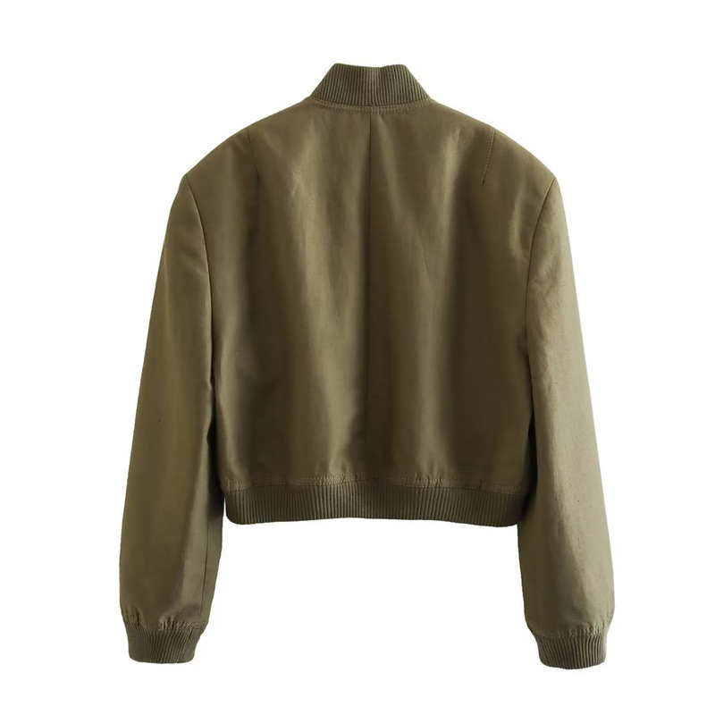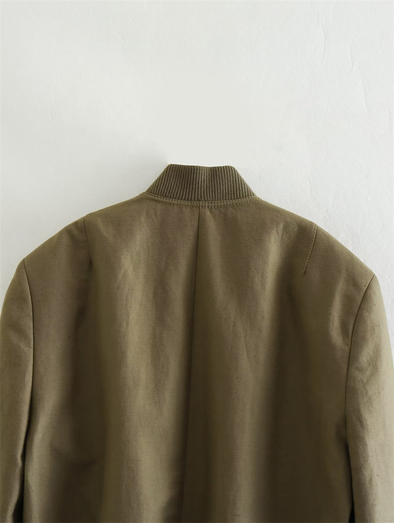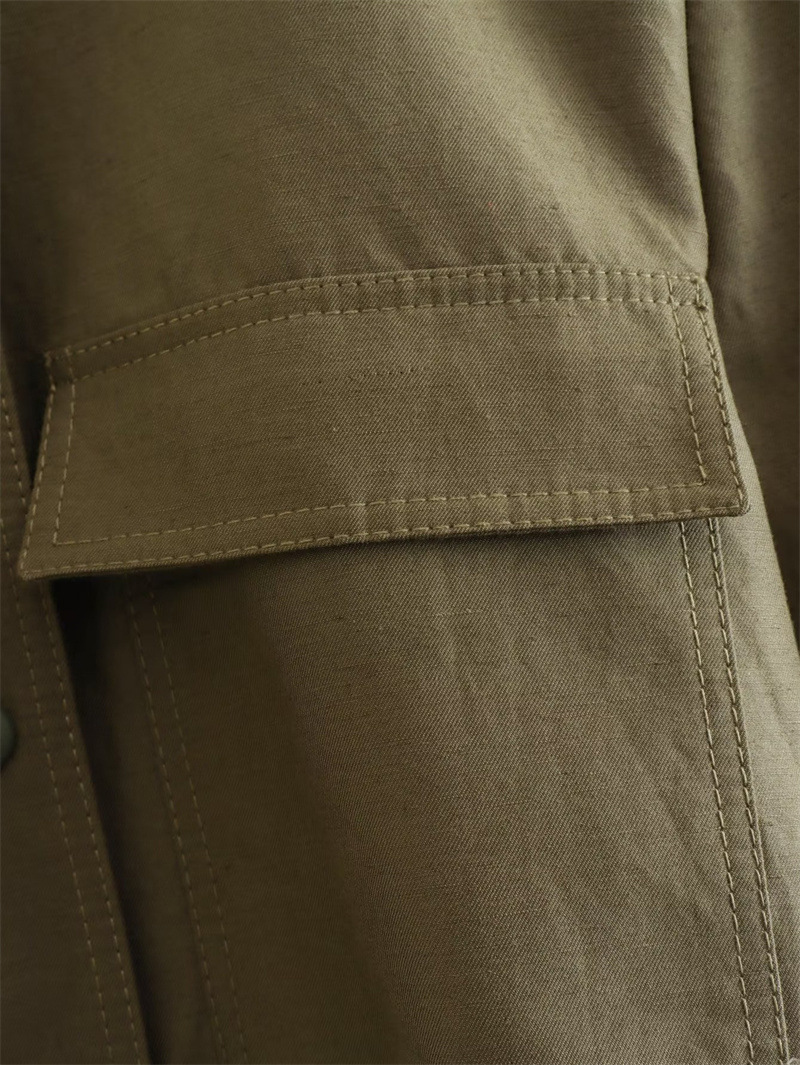 23 mùa xuân thời trang mới áo khoác cổ đứng màu trơn đơn giản nữ cá tính xu hướng gió nhiều túi ngực áo khoác